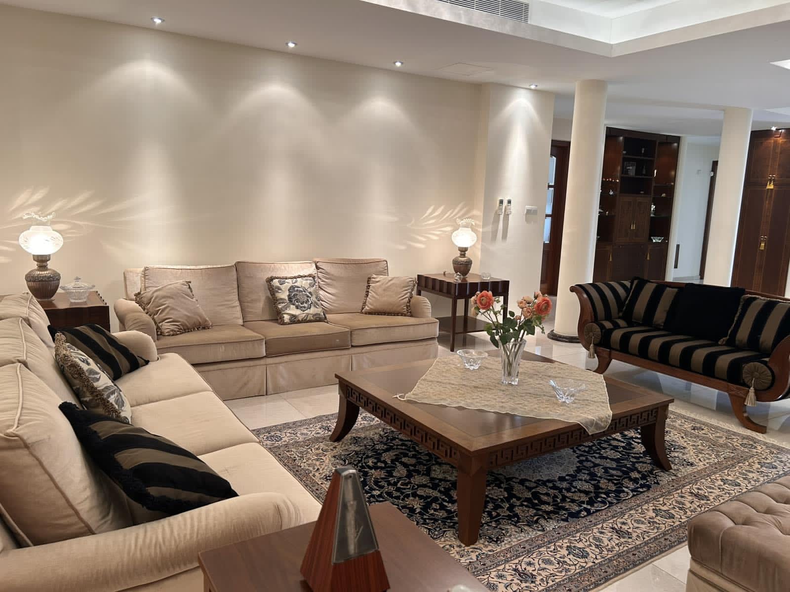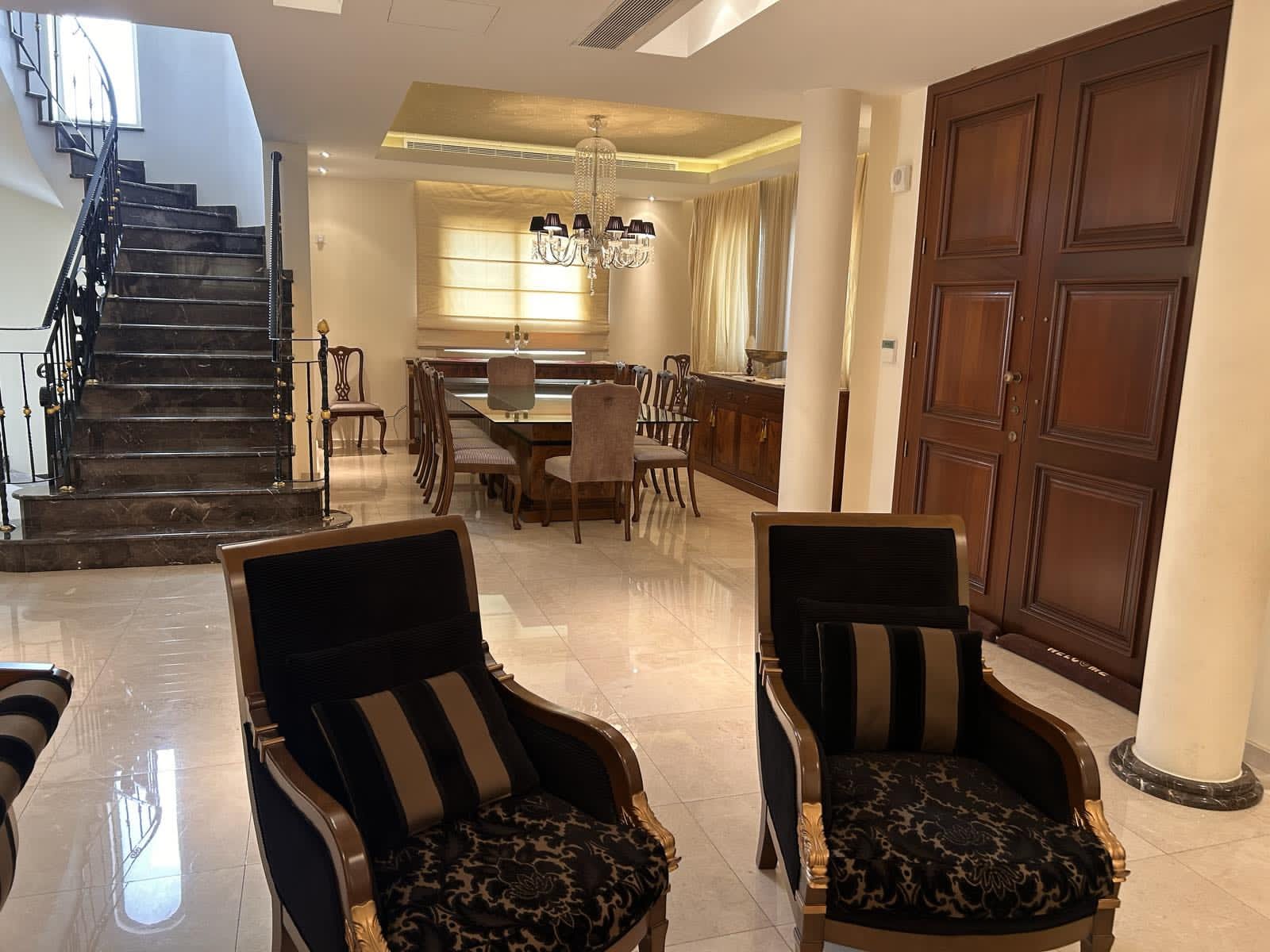 Ενοικιάζεται έπαυλη επτά υπνοδωματίων στην περιοχή Πύργος της επαρχίας Λεμεσού. Αποτελείται από 600 τ.μ. καλυμμένο εσωτερικό χώρο και 2000 τ.μ. οικόπεδο. Η έπαυλη είναι πλήρως επιπλωμένη και εξοπλισμένη με ηλεκτρικές συσκεύες, διαθέτει 4 υπνοδωμάτια στον 1ο όροφο, 1 υπνοδωμάτιο στο ισόγειο και 2 υπνοδωμάτια στα υπόγειο ανεξάρτητα απο το υπόλοιπο σπίτι μαζί με κουζίνα και 1 χώρο υγιεινής. Επίσης διαθέτει 3 χώρους υγιεινής, φωτοβολταϊκό σύστημα, σύστημα κλιματισμού, τζάκι, ηλιακό συλλέκτη, πιεστικό σύστημα νερού, 3 μεγάλα καθιστικά, σύστημα συναγερμού με κάμερες, αποθήκη, ψησταριά, μεγάλο κήπο και 2 καλυμμένους χώρους στάθμευσης. Βρίσκεται σε πολύ καλή περιοχή κοντά σε διάφορες υπηρεσίες και ανέσεις. Τιμή ενοικίασης 8,000 ευρώ, τον μήνα.