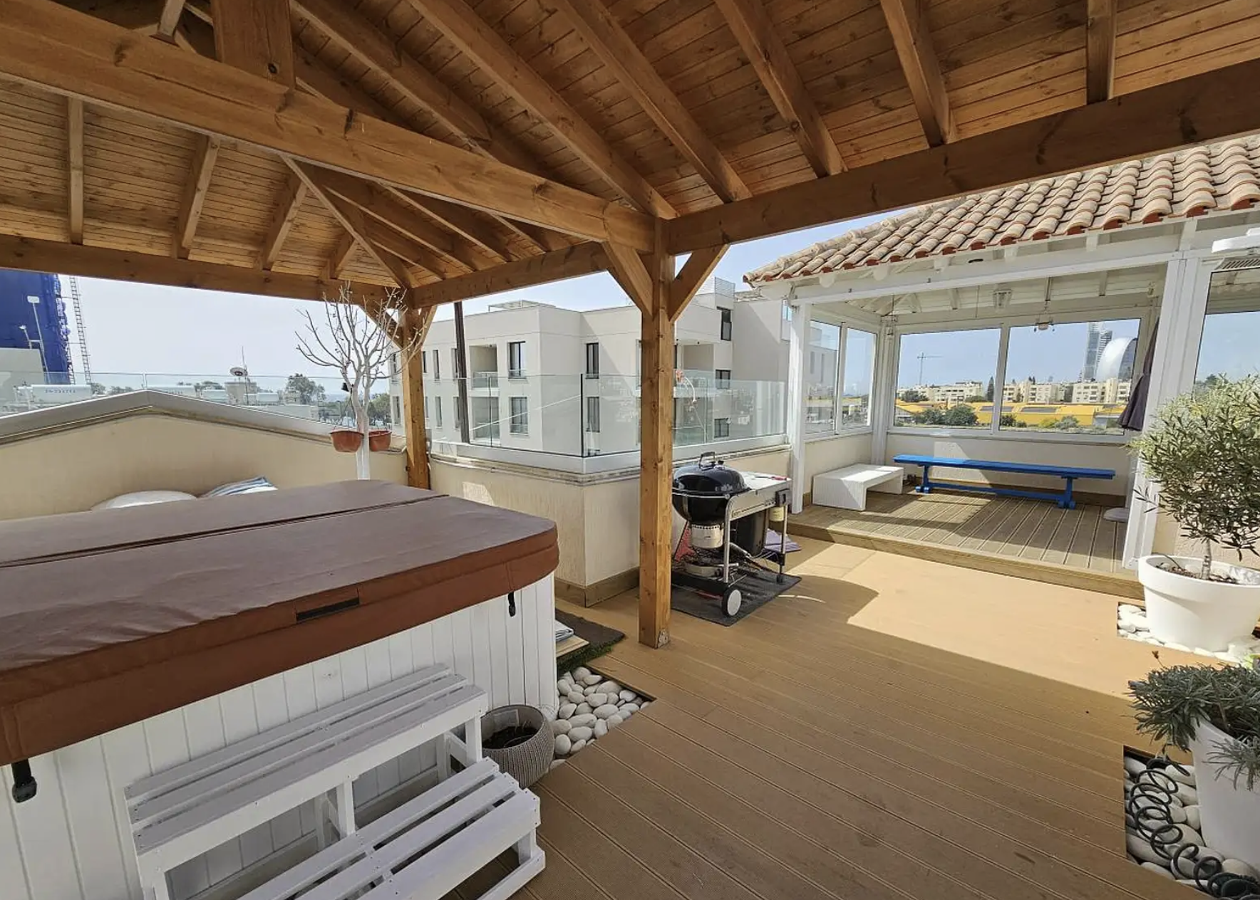 Ενοικιάζεται ρετιρέ διαμέρισμα τριών υπνοδωματίων τριών υπνοδωματίων στην Γερμασόγεια στη Λεμεσό. Αποτελείται από 297 τ.μ. καλυμμένο εσωτερικό χώρο και βρίσκεται στον τρίτο όροφο του κτιρίου. Διαθέτει 3 χώρους υγιεινής, βεράντα, σύστημα κλιματισμού, αποθήκη, κοινόχρηστη πισίνα, κήπος και καλυμμένος χώρος στάθμευσης. Βρίσκεται σε πολύ καλή περιοχή και είναι κοντά σε υπηρεσίες. Η τιμή ενοικίασης είναι 3,500 ευρώ τον μήνα.