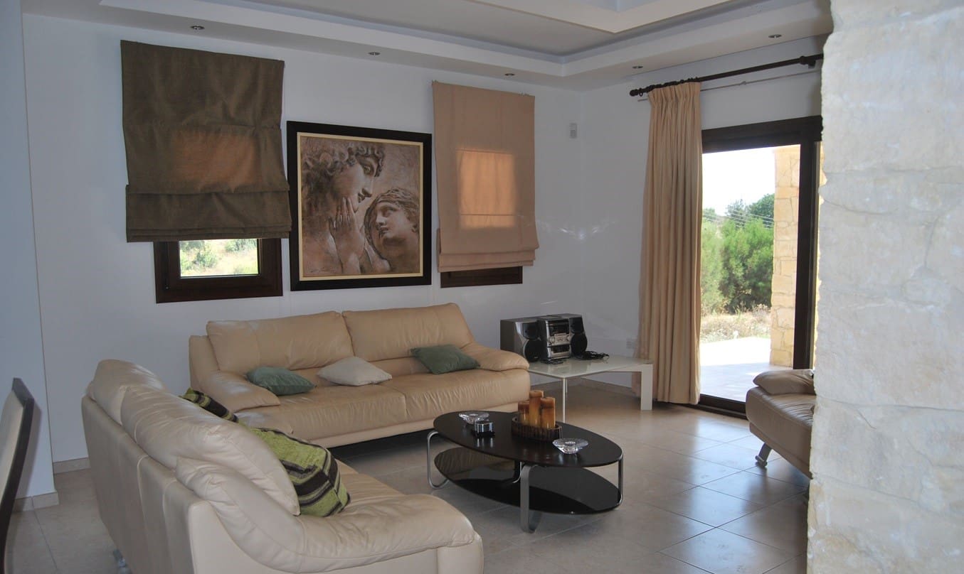 Πωλείται ανεξάρτητη μεταχειρισμένη διώροφη μονοκατοικία τριών υπνοδωματίων στην Αρμου επαρχίας Πάφου. Αποτελείται από 300 τ.μ. καλυμμένους εσωτερικούς χώρους 22,5 τ.μ. καλυμμένες βεράντες και 42 τ.μ. ακάλυπτες βεράντες σε 4,437 τ.μ. οικόπεδο, χτισμένο το 2010 με τίτλο ιδιοκτησίας. Διαθέτει τρεις χώρους υγιεινής, ensuite στο κυρίως υπνοδωμάτιο και γκαρνταρόμπα. Επίσης διαθέτει αποθήκη, πλυσταριό, γραφείο, ανοιγοανακλινόμενα παράθυρα, πέργολα, ψησταριά, τζάκι, αυλή και καλυμμένο χώρο στάθμευσης δυο θέσεων και ακάλυπτο χώρο στάθμευσης για 4 αυτοκίνητα. Επιπλέον διαθέτει κλιματιστικό σύστημα, σύστημα συναγερμού, σύστημα άρδευσης, πιεστικό σύστημα νερού, κεντρικό σύστημα ηλεκτρικής σκούπας, ηλεκτρική καγκελόπορτα εισόδου, ηλιακό θερμοσίφωνα, ηλεκτρικές συσκευές και είναι πλήρως επιπλωμένο. Τέλος διαθέτει πρόνοια για πισινά. Βρίσκεται σε ωραία και ήσυχη περιοχή με θέα στο βουνό. Τιμή πώλησης 1,790,000 ευρώ.