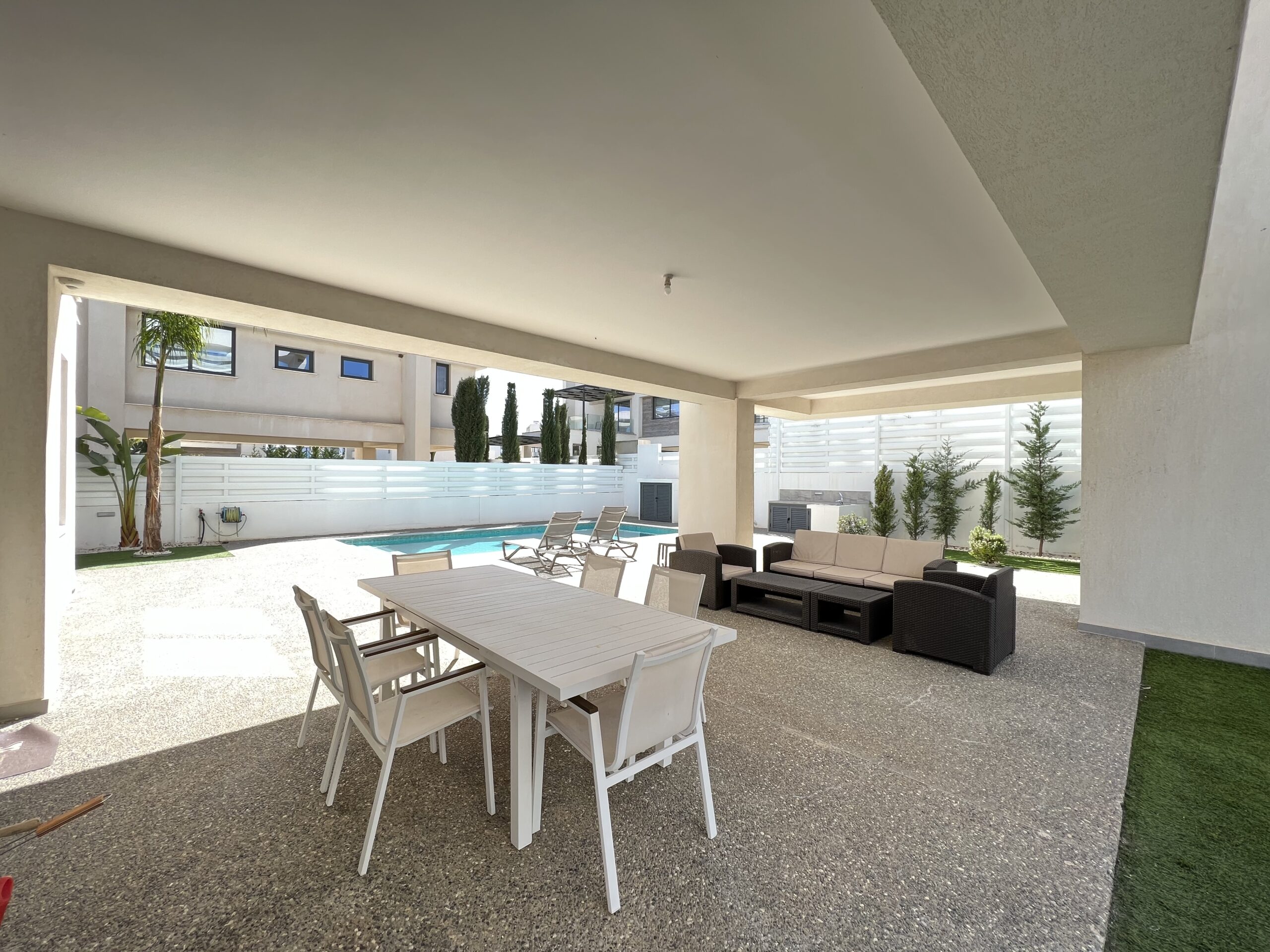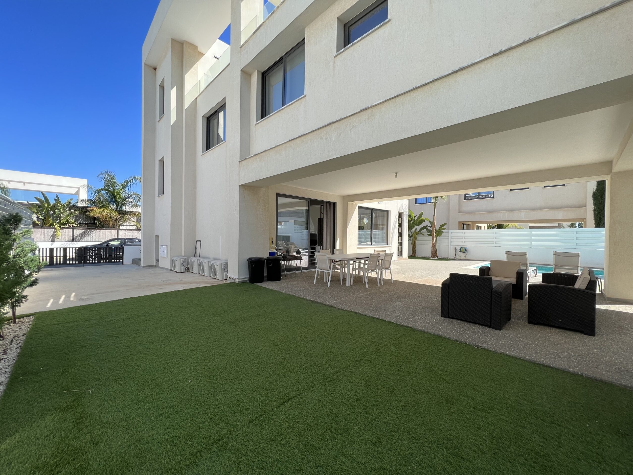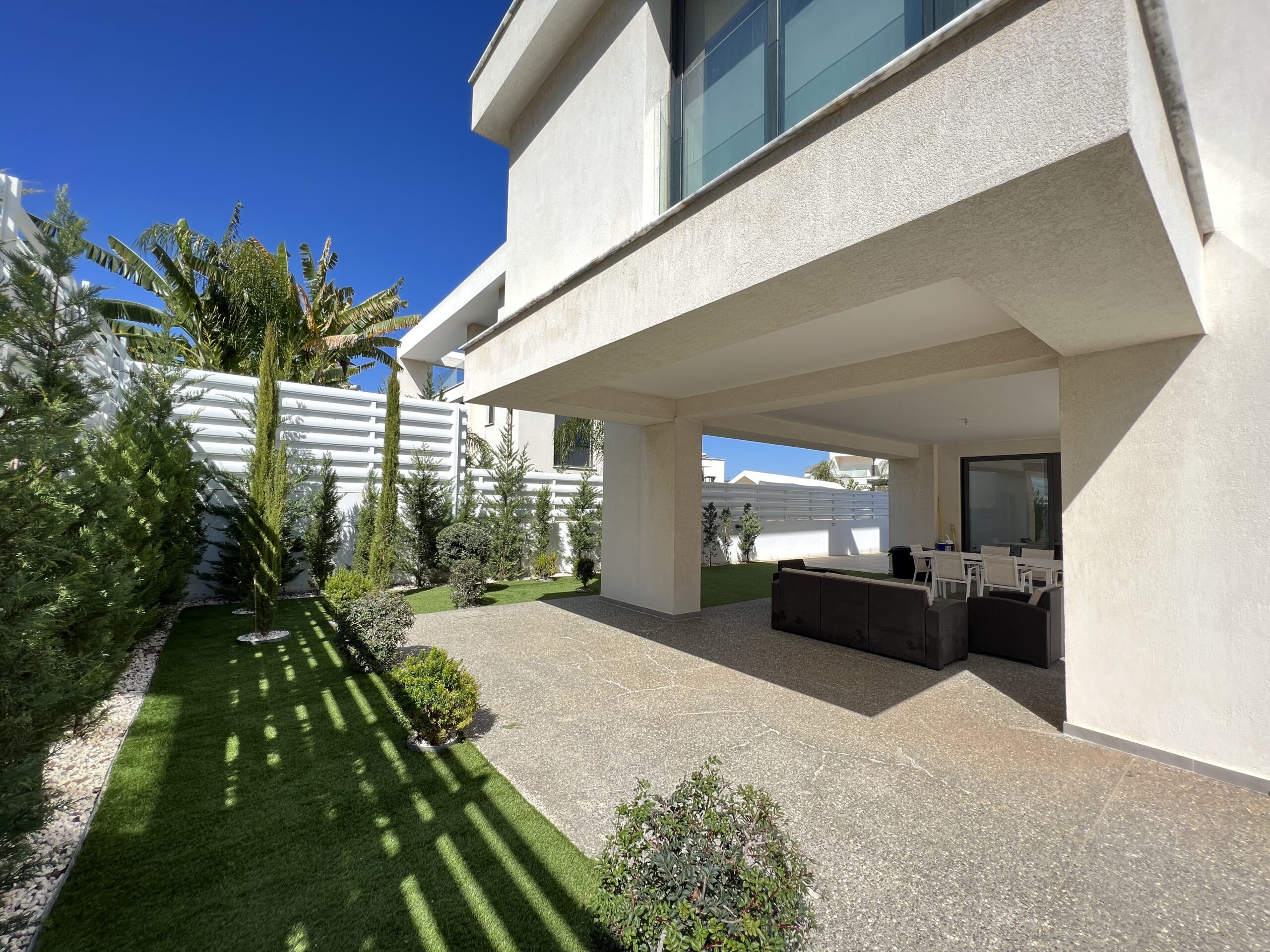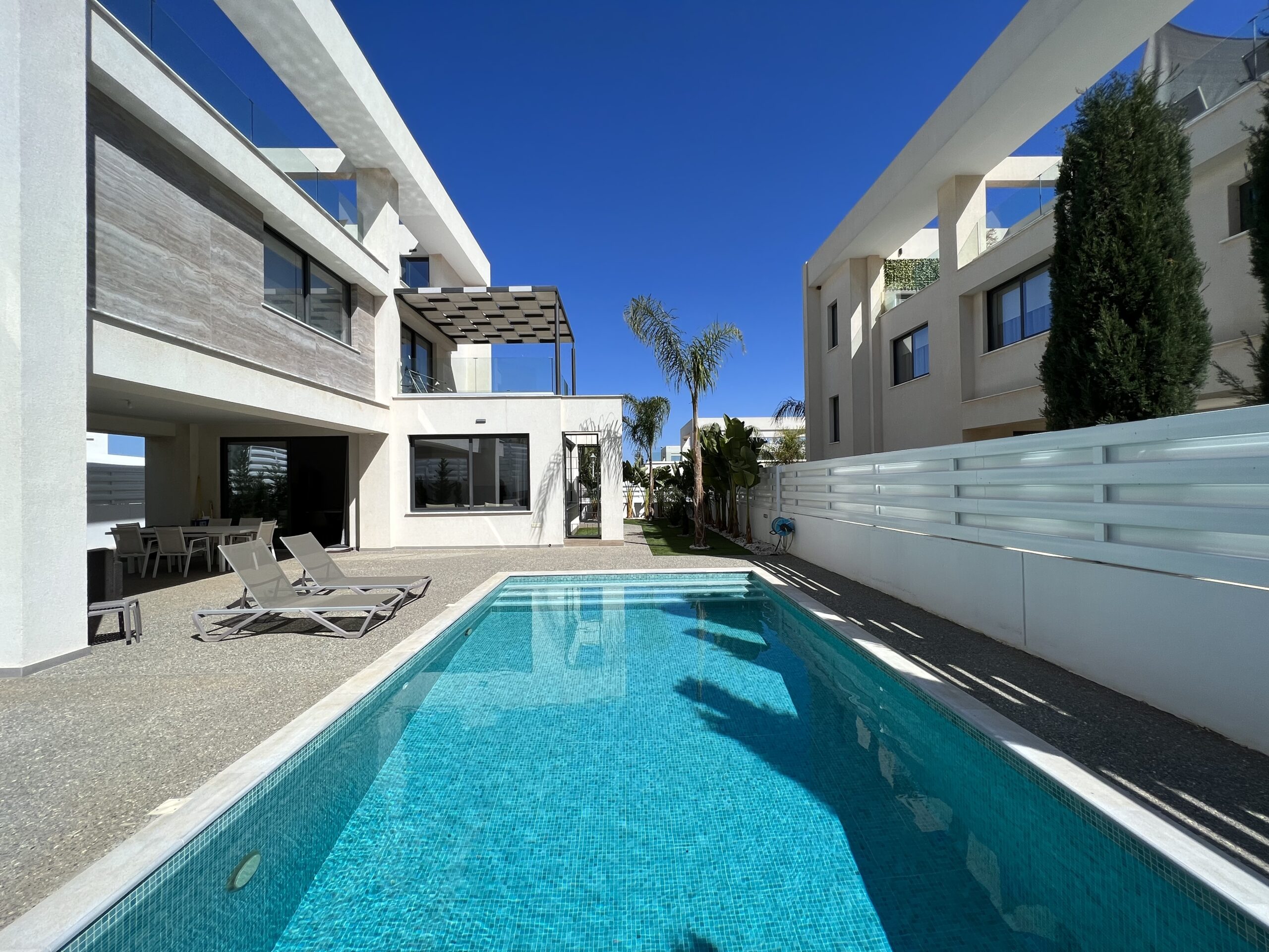 Πωλείται εκπληκτική βίλα στην περιοχή Αγία Τριάδα, πολύ κοντά από τα απέραντα γαλάζια νερά του Πρωταρά Αμμοχώστου με 139 τ.μ. καλυμμένους εσωτερικούς χώρους, 61 τ.μ. καλυμμένη βεράντα και 68 τ.μ. κήπο οροφής σε 444 τ.μ. οικόπεδο χτισμένη το 2022. Το ισόγειο αποτελείται από ενιαίο χώρο τραπεζαρίας και κουζίνας, ξεχωριστό καθιστικό και μια τουλέτα επισκεπτών. Ο πρώτος όροφος αποτελείται από τρία υπνοδωμάτια και δύο χώρους υγιεινής εκ των οποίων en-suite στο κυρίως υπνοδωμάτιο και ένα κοινό μπάνιο. Εξωτερικά υπάρχει αυλή, χώρος στάθμευσης, μικρός κήπος, εξωτερικό ντούζ, πάγκος για μπάρμπεκιου με βρύση στην αυλή αλλά και στον κήπο οροφής, πλακόστρωτη καλυμμένη και ακάλυπτη αυλή και ιδιωτική πισίνα. Επιπλέον η έπαυλη διαθέτει blinds στα παράθυρα και κλιματιστικά σε όλους τους χώρους. Αυτό το εξαιρετικό διώροφο ακίνητο βρίσκεται κοντά από την παραλία, είναι κοντά σε χώρο πράσινου, 2km από τον Πρωταρά και με εύκολη πρόσβαση σε όλες τις υπηρεσίες. Τιμή πώλησης 630,000 ευρώ. Δεν υπόκειται σε Φ.Π.Α.