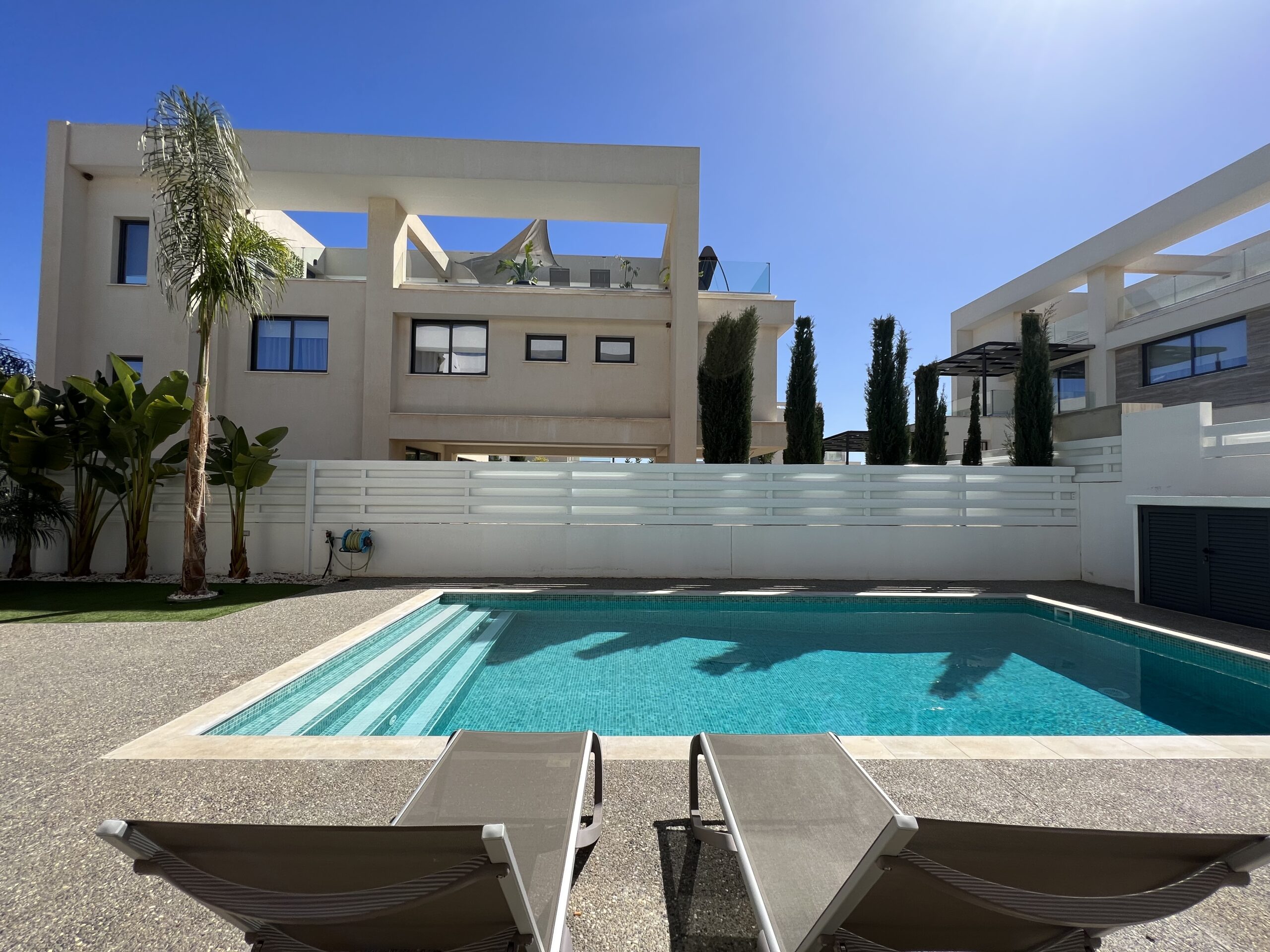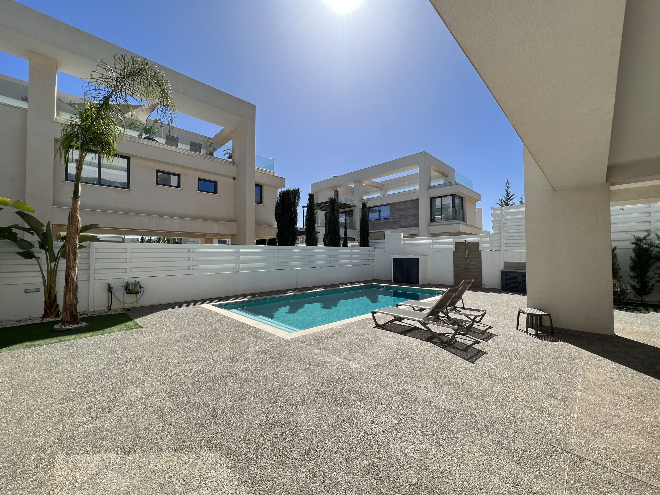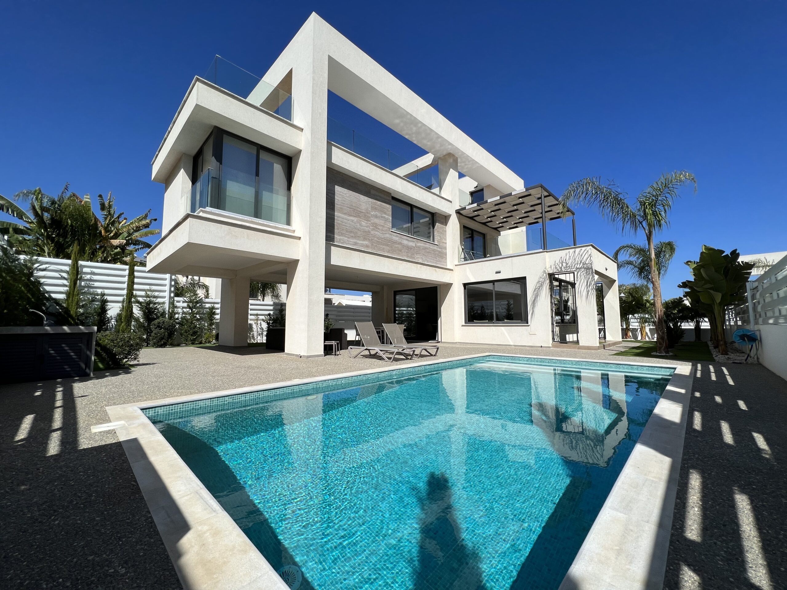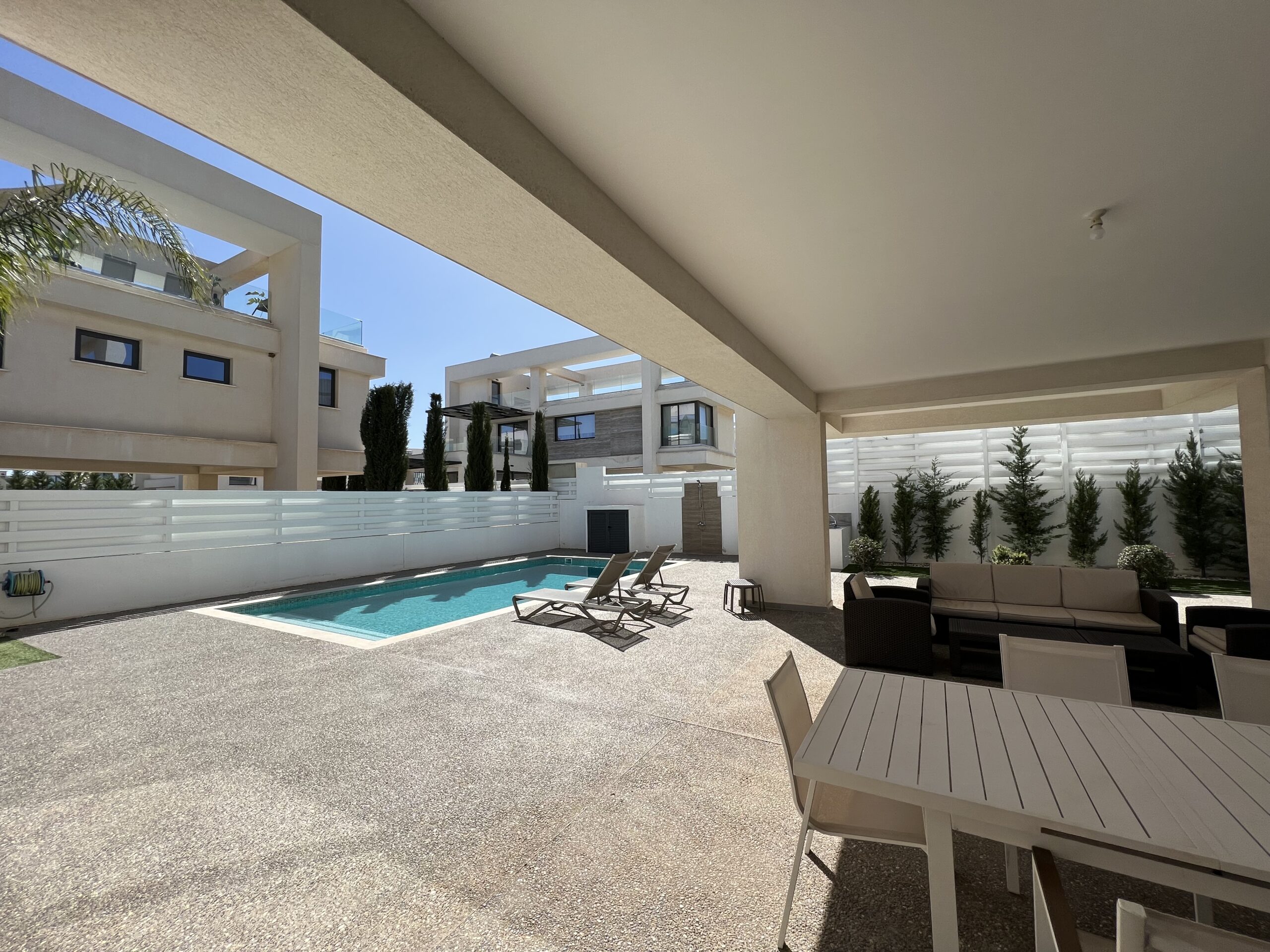 Πωλείται εκπληκτική βίλα στην περιοχή Αγία Τριάδα, πολύ κοντά από τα απέραντα γαλάζια νερά του Πρωταρά Αμμοχώστου με 139 τ.μ. καλυμμένους εσωτερικούς χώρους, 61 τ.μ. καλυμμένη βεράντα και 68 τ.μ. κήπο οροφής σε 444 τ.μ. οικόπεδο χτισμένη το 2022. Το ισόγειο αποτελείται από ενιαίο χώρο τραπεζαρίας και κουζίνας, ξεχωριστό καθιστικό και μια τουλέτα επισκεπτών. Ο πρώτος όροφος αποτελείται από τρία υπνοδωμάτια και δύο χώρους υγιεινής εκ των οποίων en-suite στο κυρίως υπνοδωμάτιο και ένα κοινό μπάνιο. Εξωτερικά υπάρχει αυλή, χώρος στάθμευσης, μικρός κήπος, εξωτερικό ντούζ, πάγκος για μπάρμπεκιου με βρύση στην αυλή αλλά και στον κήπο οροφής, πλακόστρωτη καλυμμένη και ακάλυπτη αυλή και ιδιωτική πισίνα. Επιπλέον η έπαυλη διαθέτει blinds στα παράθυρα και κλιματιστικά σε όλους τους χώρους. Αυτό το εξαιρετικό διώροφο ακίνητο βρίσκεται κοντά από την παραλία, είναι κοντά σε χώρο πράσινου, 2km από τον Πρωταρά και με εύκολη πρόσβαση σε όλες τις υπηρεσίες. Τιμή πώλησης 630,000 ευρώ. Δεν υπόκειται σε Φ.Π.Α.