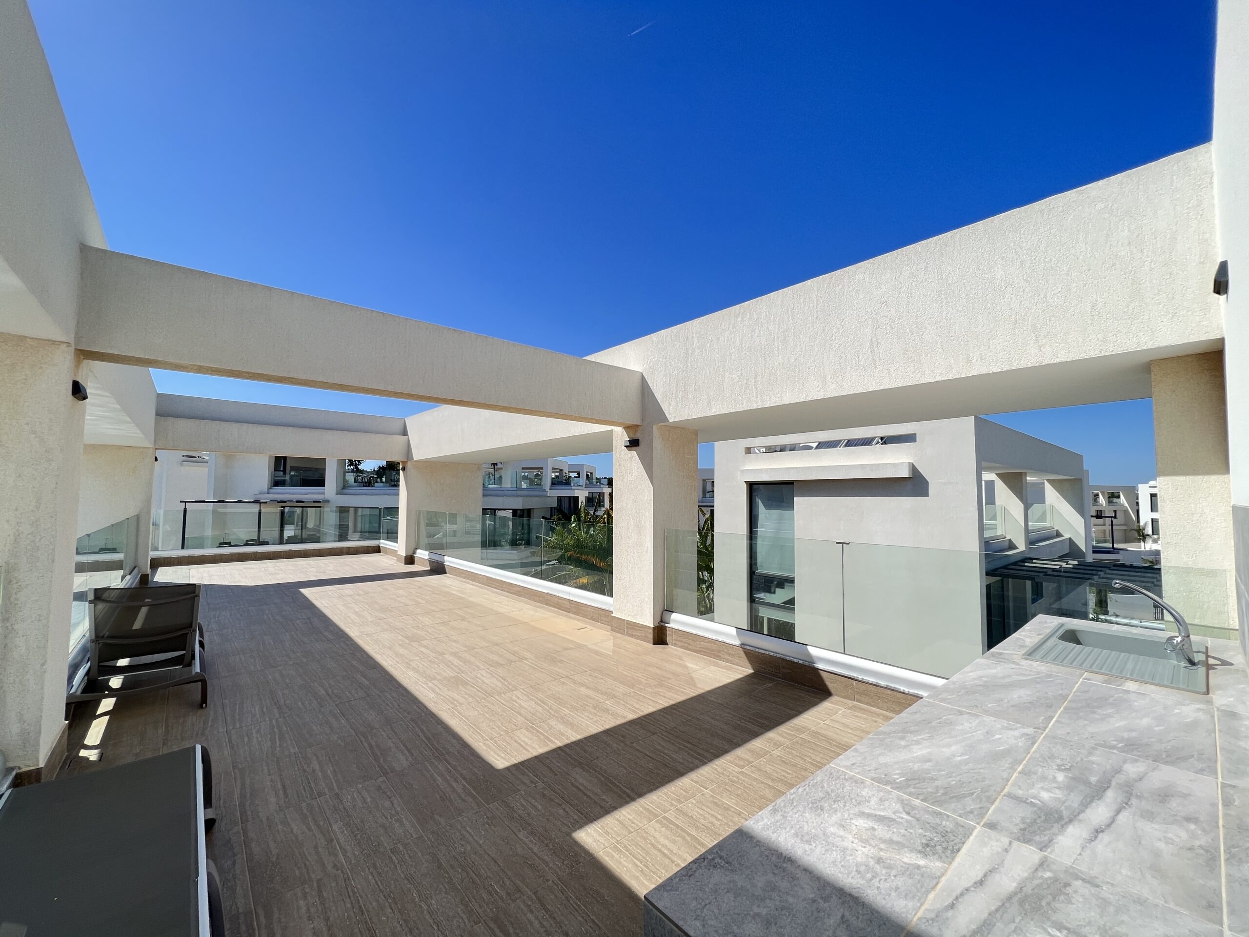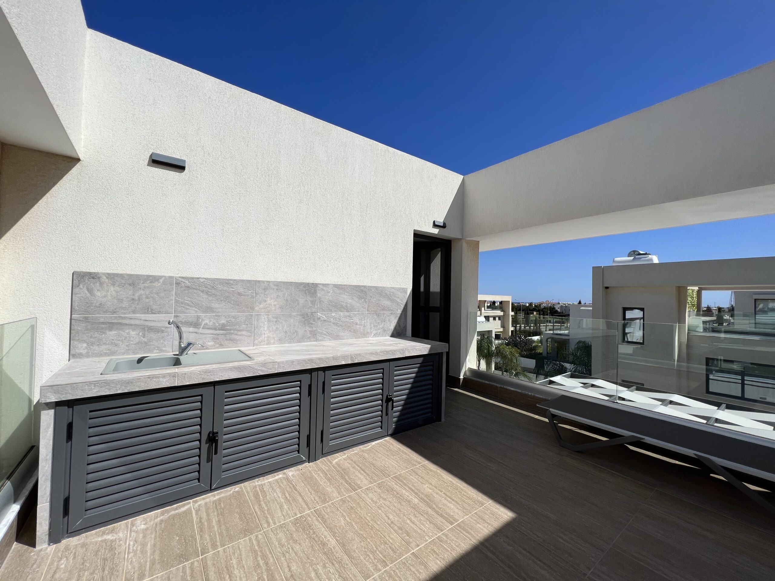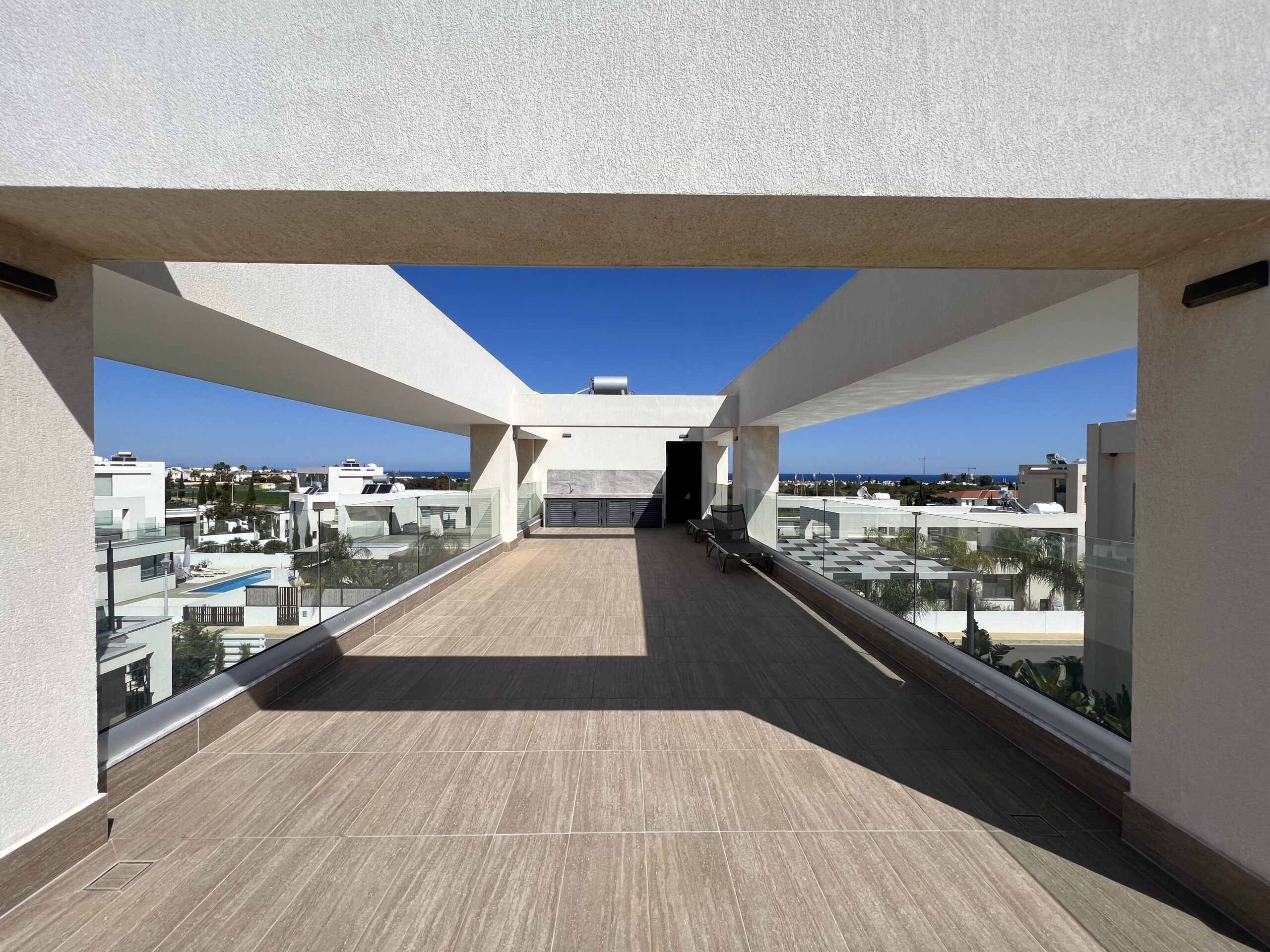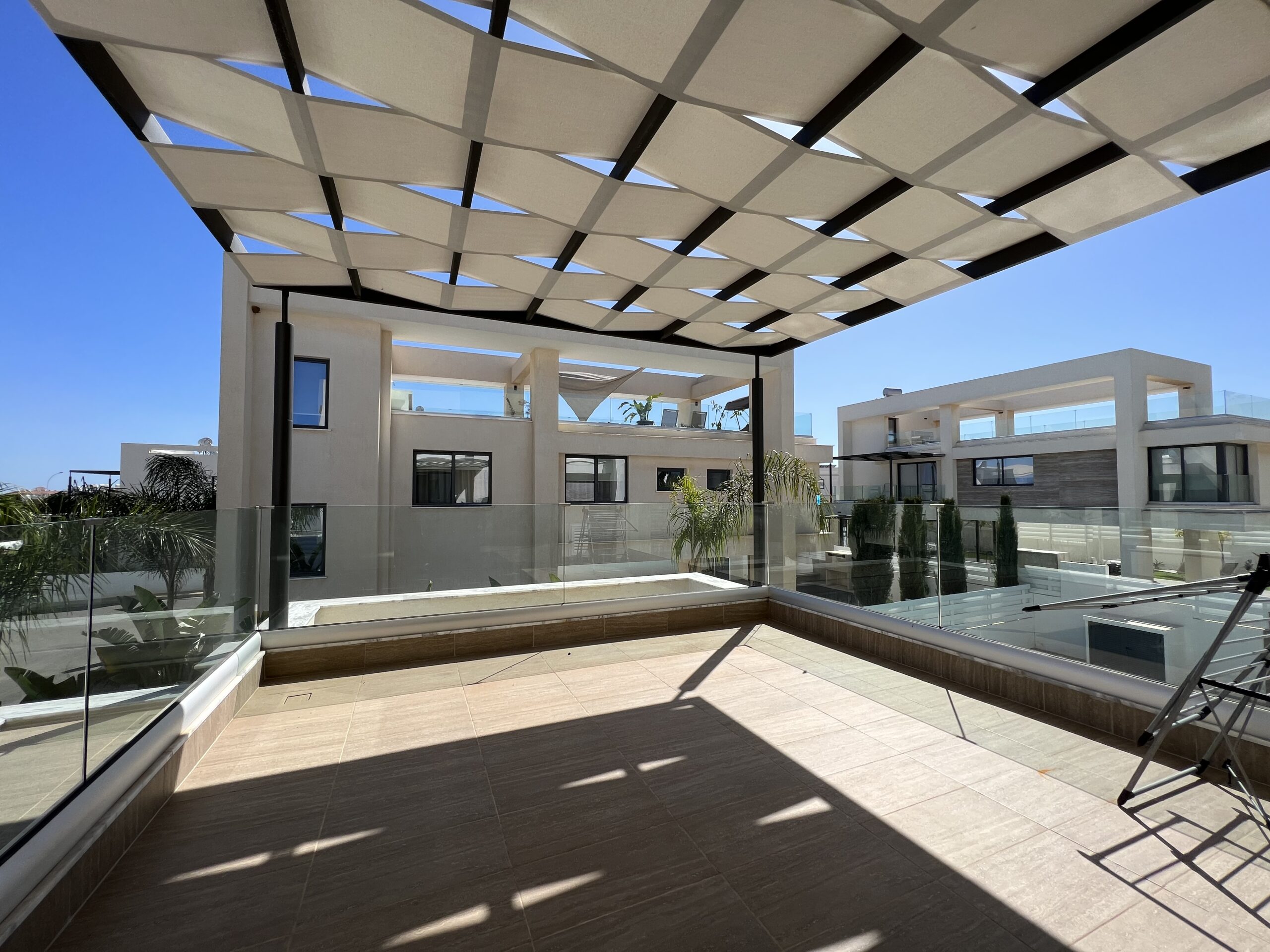 Πωλείται εκπληκτική βίλα στην περιοχή Αγία Τριάδα, πολύ κοντά από τα απέραντα γαλάζια νερά του Πρωταρά Αμμοχώστου με 139 τ.μ. καλυμμένους εσωτερικούς χώρους, 61 τ.μ. καλυμμένη βεράντα και 68 τ.μ. κήπο οροφής σε 444 τ.μ. οικόπεδο χτισμένη το 2022. Το ισόγειο αποτελείται από ενιαίο χώρο τραπεζαρίας και κουζίνας, ξεχωριστό καθιστικό και μια τουλέτα επισκεπτών. Ο πρώτος όροφος αποτελείται από τρία υπνοδωμάτια και δύο χώρους υγιεινής εκ των οποίων en-suite στο κυρίως υπνοδωμάτιο και ένα κοινό μπάνιο. Εξωτερικά υπάρχει αυλή, χώρος στάθμευσης, μικρός κήπος, εξωτερικό ντούζ, πάγκος για μπάρμπεκιου με βρύση στην αυλή αλλά και στον κήπο οροφής, πλακόστρωτη καλυμμένη και ακάλυπτη αυλή και ιδιωτική πισίνα. Επιπλέον η έπαυλη διαθέτει blinds στα παράθυρα και κλιματιστικά σε όλους τους χώρους. Αυτό το εξαιρετικό διώροφο ακίνητο βρίσκεται κοντά από την παραλία, είναι κοντά σε χώρο πράσινου, 2km από τον Πρωταρά και με εύκολη πρόσβαση σε όλες τις υπηρεσίες. Τιμή πώλησης 630,000 ευρώ. Δεν υπόκειται σε Φ.Π.Α.
