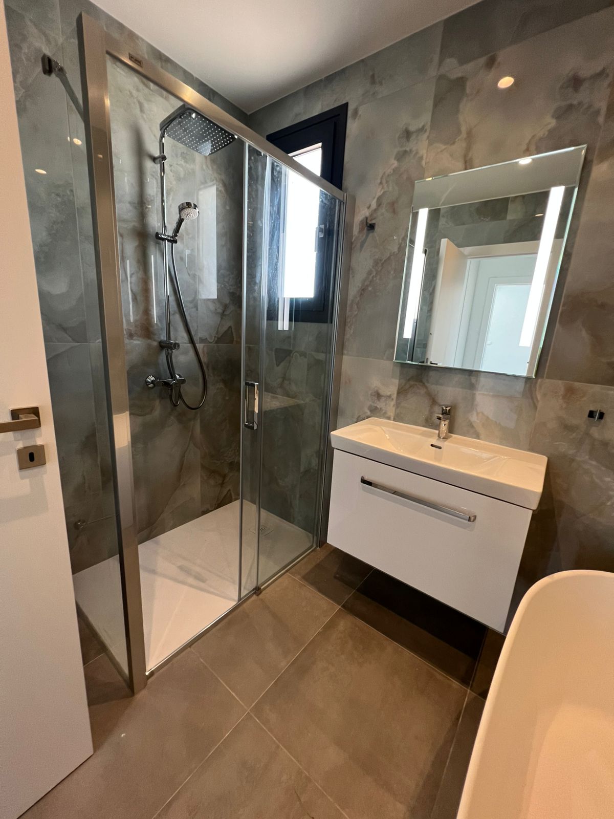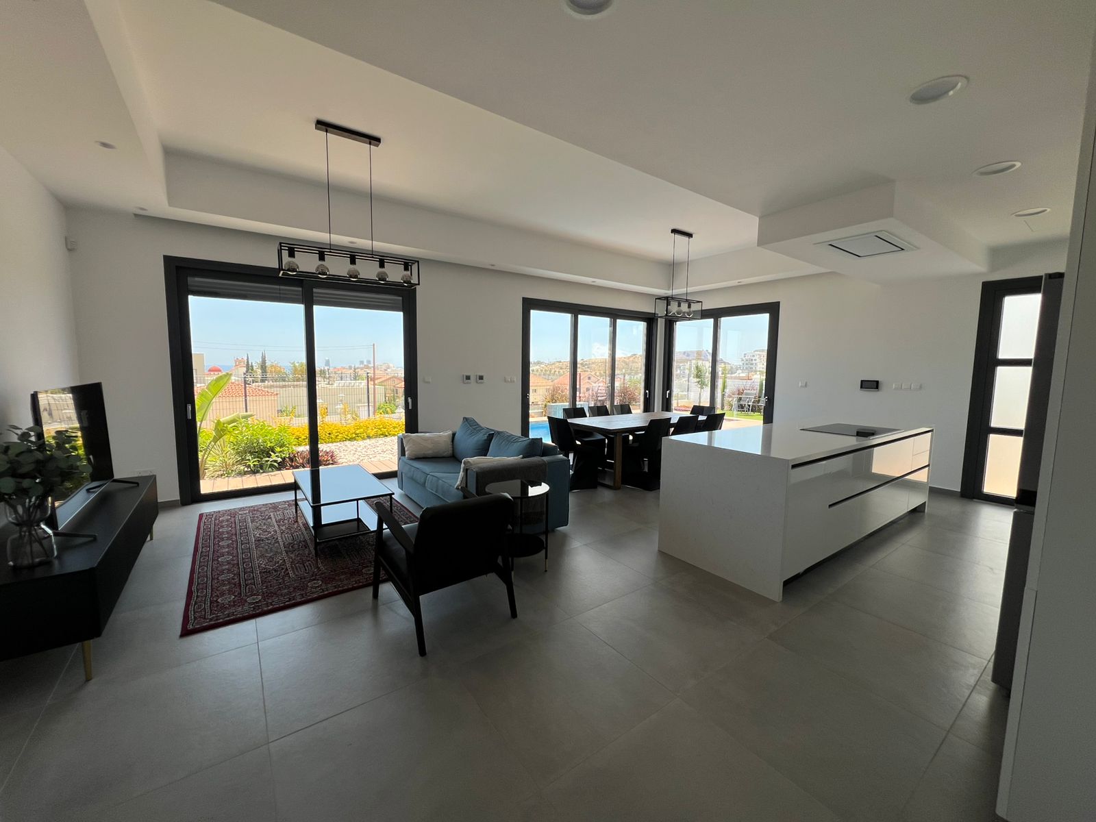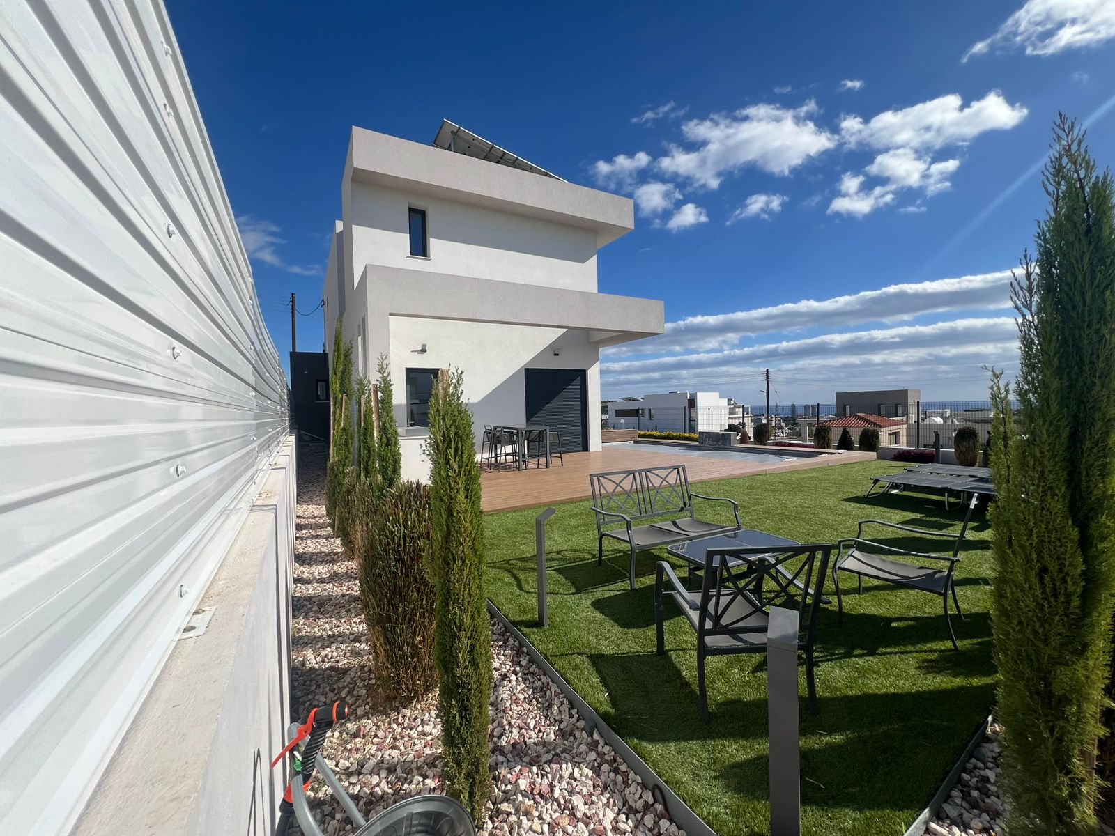 Πωλείται ετοιμοπαράδοτη, ανεξάρτητη οικία τεσσάρων υπνοδωματίων στον Άγιο Αθανάσιο στη Λεμεσό. Αποτελείται από 200 τ.μ. καλυμμένους εσωτερικούς χώρους σε 433 τ.μ. οικόπεδο. Διαθέτει 4 χώρους υγιεινής, en suite σε όλα τα υπνοδωμάτια, γκαρνταρόμπα στο κυρίως υπνοδωμάτιο, υποδαπέδια θέρμανση, υπερυψωμένο ταβάνι, εγκατεστημένο σύστημα κλιματισμού, ρολά στα παράθυρα, πλυσταριό, ιδιωτική πισίνα, ψησταριά, διπλό γκαράζ, μεγάλη αυλή, ιταλική κουζίνα, τρία συστήματα φιλτραρίσματος νερού, αποσκληρυντής νερού για όλο το σπίτι και ηλιακό σύστημα 7kw. Επιπρόσθετα, υπάρχει φωτισμός λωρίδων LED σε όλο το σπίτι, κάμερες ασφαλείας και σύστημα συναγερμού. Το ένα υπνοδωμάτιο είναι στο ισόγειο και μπορεί να χρησιμοποιηθεί σαν δωμάτιο υπηρεσίας. Χτίστηκε το 2022. Διαθέτει πιστοποιητικό Ενεργειακής Απόδοσης Α’. Η βίλα βρίσκεται δίπλα σε ένα πάρκο με πλήρη θέα στη θάλασσα και κοντά σε όλες τις υπηρεσίες. Τιμή πώλησης 1,380,000 ευρώ πλέον Φ.Π.Α..