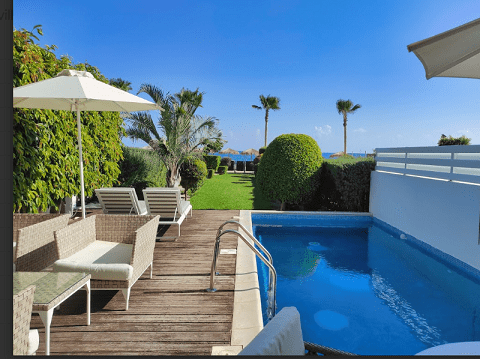 Πωλείται ημιανεξάρτητη πολυτελής έπαυλη τριών υπνοδωματίων στον Μαζωτό – επαρχία Λάρνακας, με ιδιωτική πισίνα, πάνω στην παραλία. Αποτελείται από 133 τ.μ. εσωτερικό καλυμμένο χώρο, 90 τ.μ. καλυμμένη βεράντα και 342 τ.μ. ιδιωτικό κήπο, σε 534 τ.μ. οικόπεδο. Η έπαυλη διαθέτει 4 χώρους υγιεινής, en suite στα 2 υπνοδωμάτια, πιεστικό σύστημα νερού, μεγάλη αυλή με ιδιωτική πισίνα, αποθήκη και χώρο στάθμευσης. Επίσης διαθέτει πλήρης επίπλωση και εξοπλισμένη κουζίνα. Βρίσκεται σε πολύ ωραία περιοχή με θέα τη θάλασσα. Τιμή πώλησης 1,650,000 ευρώ πλέον Φ.Π.Α.
