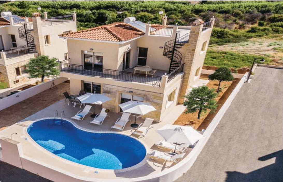 Πωλείται καινούργια έπαυλη τριών υπνοδωματίων με πισινά στο Προδρόμι στη Πόλη Χρυσοχούς της επαρχίας Πάφου. Αποτελείται από 139,7 τ.μ. καλυμμένους εσωτερικούς χώρους, 7,5 τ.μ. καλυμμένες βεράντες, 44 τ.μ. ακάλυπτες βεράντες, 24,5 τ.μ. κήπο οροφής και 8×4 πισίνα. Διαθέτει 3 χώρους υγιεινής, en-suite εξ` αυτών δυο, ακάλυπτο χώρο στάθμευσης, τζάκι και αυλή. Επιπλέον διαθέτει πρόνοιες για κεντρική θέρμανση και πρόνοιες για σύστημα κλιματισμού. Βρίσκεται σε πολύ καλή περιοχή κοντά σε ανέσεις με θα την θάλασσα. Τιμή πώλησης 465,000 ευρώ χωρίς Φ.Π.Α.