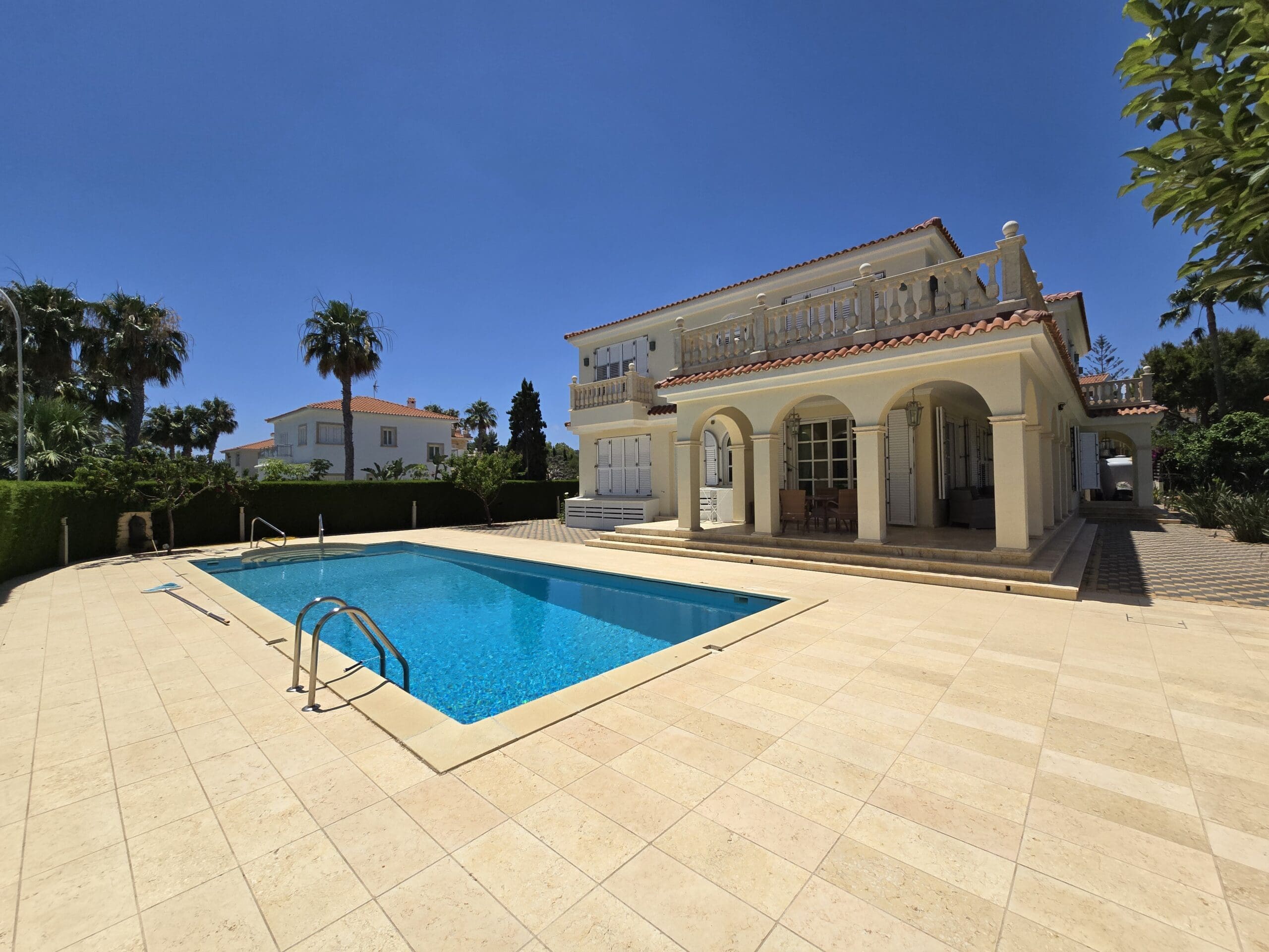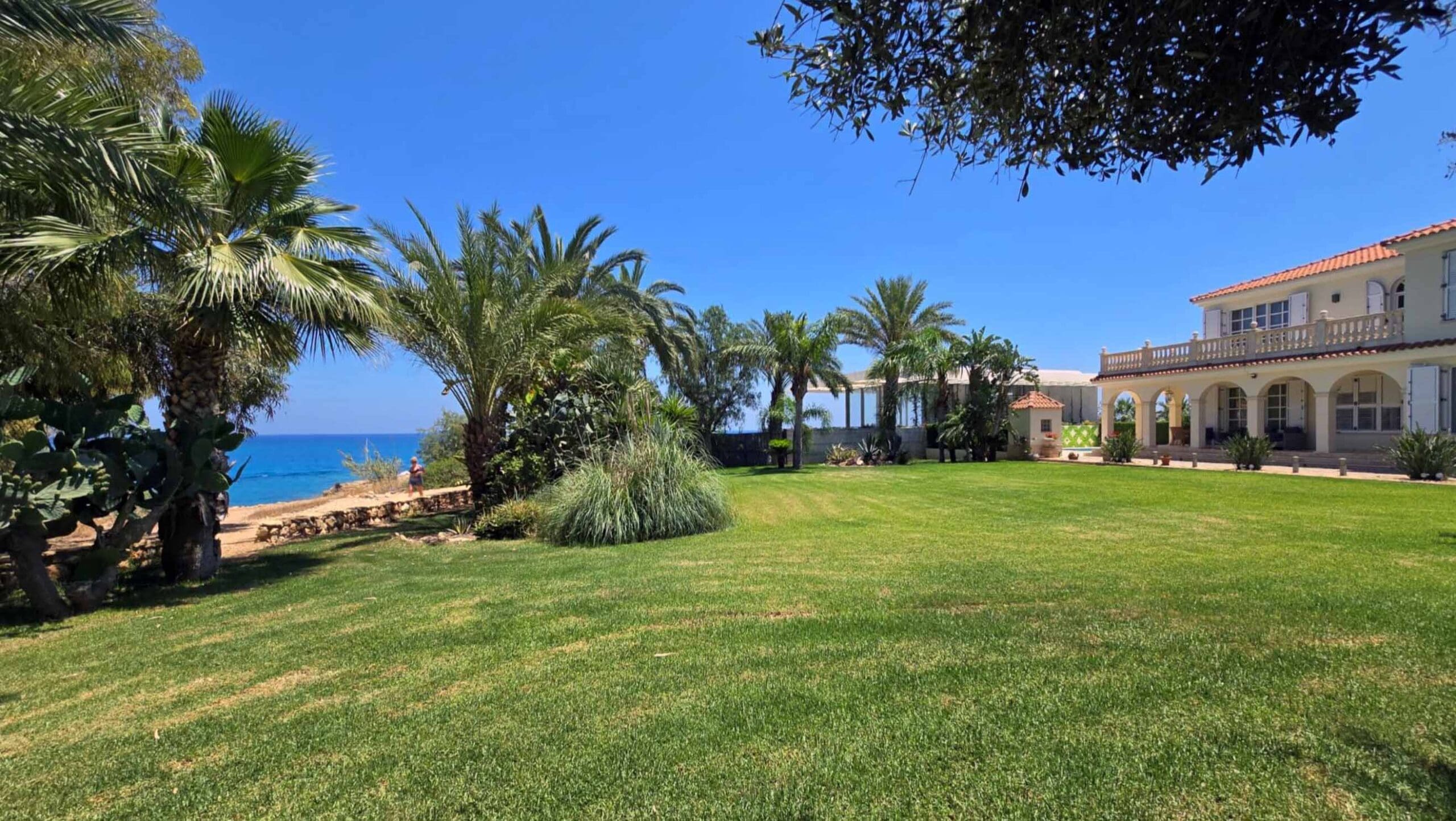 Πωλείται πολυτελής έπαυλη τεσσάρων υπνοδωματίων στην πρώτη γραμμή της θάλασσας στο Κάβο Γκρέκο στον Πρωταρά – επαρχίας Αμμοχώστου, με 374 τ.μ. καλυμμένους χώρους, 78 τ.μ. βεράντες, σε 2430 τ.μ. οικόπεδο, χτισμένη το 2008. Το ισόγειο αποτελείται από πολυτελές σαλόνι, πλήρως εξοπλισμένη με όλες τις ηλεκτρικές συσκευές κουζίνα και τραπεζαρία, με εύκολη πρόσβαση προς την ιδιωτική πισίνα, 1 χώρο υγιεινής ξένων, ως επίσης και στον τεράστιο κήπο με θέα και άμεση πρόσβαση προς τη θάλασσα. Η κουζίνα διαθέτει όλες τις ηλεκτρικές συσκευές. Στον πρώτο όροφο βρίσκονται τα 4 υπνοδωμάτια με en-suite και μπαλκόνια. Η έπαυλη είναι πλήρως επιπλωμένη και διαθέτει 4 χώρους στάθμευσης. Η έπαυλη έχει σχεδιαστεί προσεκτικά με γνώμονα την άνεση και την αρμονία. Το όλο σχέδιο του ακινήτου έχει επιμεληθεί διάσημος γλύπτης. Βρίσκεται στην καρδιά του κοσμοπολίτικου παραλιακού θέρετρου του Πρωταρά, με εκπληκτικές παραλίες, γαλαζοπράσινα νερά και μια σειρά από φιλόξενα εστιατόρια, μπαρ και καφέ. Τιμή πώλησης 7.000.000 ευρώ. Δεν υπόκειται σε Φ.Π.Α.