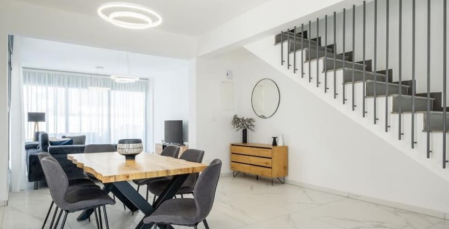 Πωλείται σχεδόν ετοιμοπαράδοτη ανεξάρτητη γωνιακή έπαυλη στην περιοχή Πύλας, επαρχία Λάρνακα. Η έπαυλη αποτελείται με 170 τ.μ. καλυμμένους εσωτερικούς χώρους, 15 τ.μ. καλυμμένη βεράντα στο ισόγειο, 20 τ.μ βεράντα στον πρώτο όροφο, 24 τ.μ καλυμμένη βεράντα και 46 ακάλυπτη στον κήπο οροφής σε 346 τ.μ. οικόπεδο στο σύνολο. Το ισόγειο αποτελείται από ενιαίο χώρο τραπεζαρίας, κουζίνας και καθιστικού με πρόνοια τζακιού, 1 τουαλέτα επισκεπτών και 1 δωμάτιο. Ο 1ος όροφος αποτελείται από 3 υπνοδωμάτια, 2 χώρους υγιεινής, εκ των οποίων το 1 είναι en-suite στο κυρίως υπνοδωμάτιο μαζί με γκαρνταρόμπα. Επιπλέον, υπάρχει κήπος οροφής με πρόνοια για τζακούζι. Εξωτερικά, υπάρχει αυλή, καλυμμένος χώρος στάθμευσης για 2 αυτοκίνητα, κήπος, αποθήκη και υπάρχει και πρόνοια πισίνας. Η προνομιακή της τοποθεσία εξασφαλίζει υψηλή ποιότητα διαβίωσης, καθιστώντας την εξαιρετική επιλογή για οικιστικούς σκοπούς ή ως επένδυση με πολλά υποσχόμενη απόδοση επένδυσης με ενεργειακή απόδοση Α. Η γειτονιά είναι νεόκτιστη και θα απολαύσετε τη θέα στη θάλασσα καθώς βρίσκεται 5 λεπτά από την θάλσσα. Επιπλέον, είναι βολικά κοντά σε όλες τις ανέσεις, με εύκολη πρόσβαση στον αυτοκινητόδρομο. Επιπλέον η οικία εμπίπτει στο νέο ακριτικό σχέδιο για κυβερνητική βοήθεια από 20,000 ευρώ μέχρι 55,000 ευρώ. Αναμενόμενη ημερομηνία παράδοσης Σεπτέμβριο του 2024. Τιμή πώλησης 550,000 ευρώ.