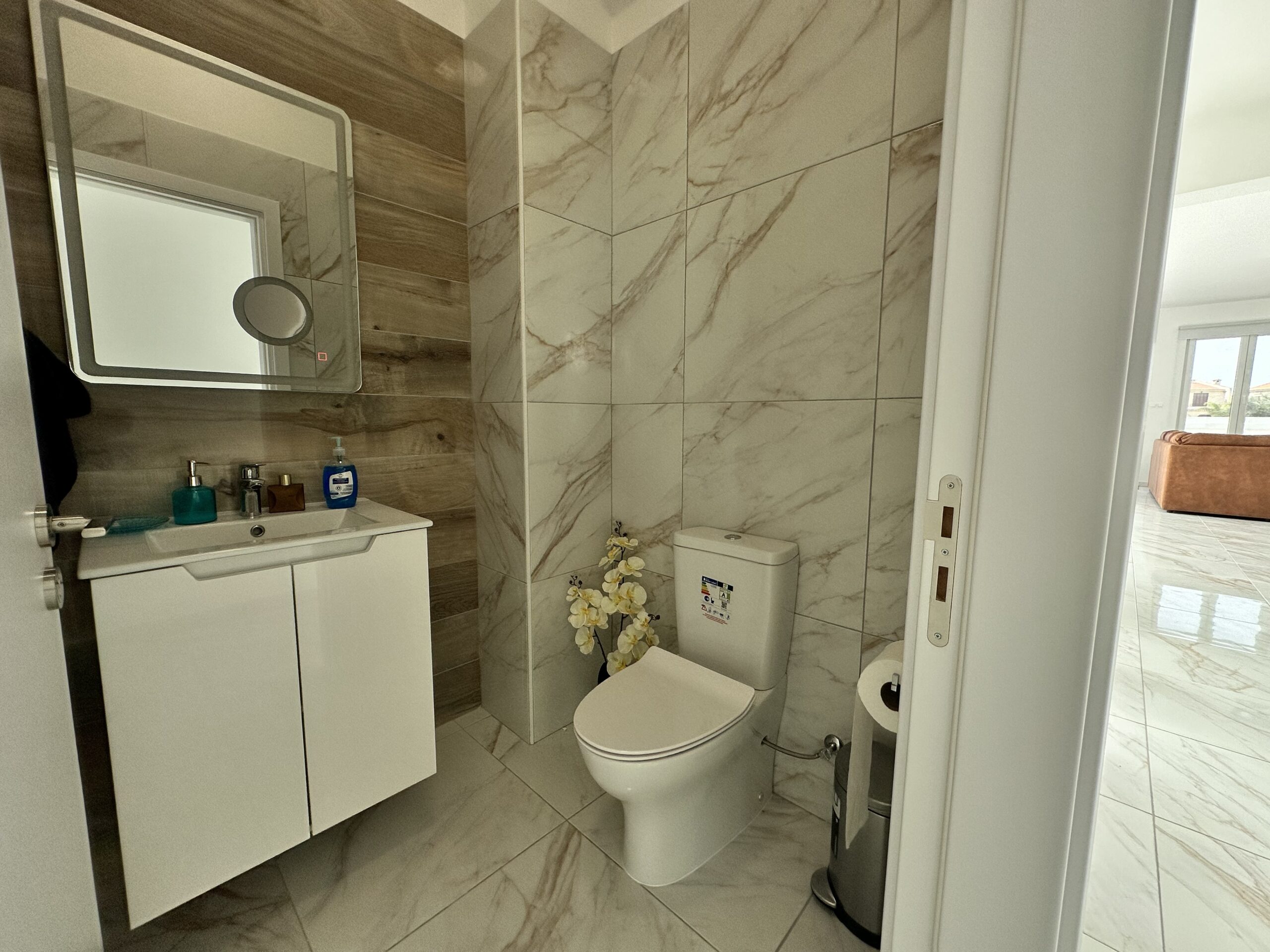 Πωλείται ετοιμοπαράδοτη ανεξάρτητη πολυτελής κατοικία τριών υπνοδωματίων στην Δεκέλεια, επαρχία Λάρνακας. Αποτελείται από 135 τ.μ. καλυμμένο εσωτερικό χώρο, 28 τ.μ. καλυμμένη βεράντα σε 307 τ.μ. οικόπεδο. Διαθέτει 3 χώρους υγιεινής, en suite σε όλα τα υπνοδωμάτια, μοντέρνα και πολυτελής κουζίνα με ενιαίο χώρο για το καθιστικό, καλυμμένο χώρο στάθμευσης, μεγάλη αυλή με πρόνοια πισίνας, κήπο, πρόνοιες κλιματισμού και θέρμανσης. Είναι Ενεργειακής Απόδοσης Α’. Βρίσκεται σε εξαιρετική τοποθεσία σε μια ήσυχη περιοχή και μόλις 400 μέτρα από μια από τις πολλές αμμώδεις παραλίες που έχουν βραβευτεί με Γαλάζια Σημαία. Τα δύο πανεπιστήμια του UCLAN και του Αμερικανικού Πανεπιστημίου Κύπρου είναι εύκολα προσβάσιμα. Η περιοχή προσφέρει επίσης όλες τις απαραίτητες ανέσεις όπως σούπερ μάρκετ, τράπεζες, φαρμακεία, καταστήματα καθώς και εύκολη πρόσβαση στον αυτοκινητόδρομο που συνδέει όλες τις μεγάλες πόλεις της Κύπρου, κάνοντας το Διεθνές Αεροδρόμιο Λάρνακας σε απόσταση μόλις 15 οδικώς και μόλις 25 λεπτών από τη διάσημη Αγία Νάπα και τον Πρωταρά. Τιμή πώλησης 625.000 ευρώ πλέον Φ.Π.Α.