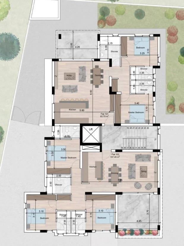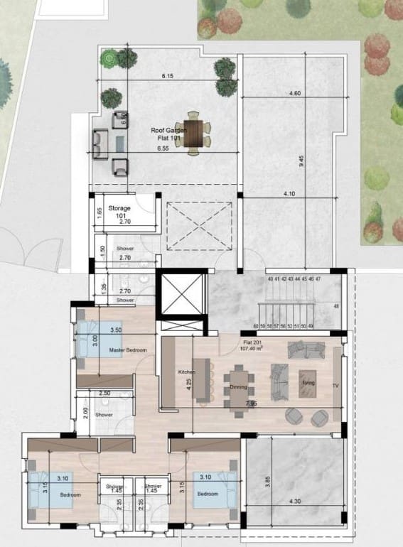 Πωλείται σχεδόν ετοιμοπαράδοτο διαμέρισμα δύο υπνοδωματίων στα Λιβάδια – επαρχία Λάρνακας στον 1ο όροφο διώροφης πολυκατοικίας. Το διαμέρισμα αποτελείται από 83 τ.μ. καλυμμένο εσωτερικό χώρο, 24 τ.μ. καλυμμένη βεράντα και 49 τ.μ. κήπο οροφής. Διαθέτει en-suite σε όλα τα υπνοδωμάτια, καλυμμένο χώρο στάθμευσης και αποθήκη. Βρίσκεται σε πολύ καλή περιοχή, κοντά σε όλες τις υπηρεσίες. Ημερομηνία παράδοσης Μάϊο του 2026. Τιμή πώλησης 325,000 ευρώ πλέον Φ.Π.Α.