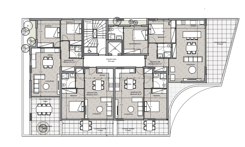 Πωλείται υπό ανέγερση διαμέρισμα δύο υπνοδωματίων στον Άγιο Νικολάο στη Λεμεσό. Αποτελείται από 81 τ.μ. καλυμμένο εσωτερικό χώρο και 26 τ.μ. καλυμμένη βεράντα. Διαθέτει δύο χώρους υγιεινής, en suite στο κυρίως υπνοδωμάτιο, καλυμμένο χώρο στάθμευσης, αποθήκη και πρόνοια κλιματισμού. Είναι στον δεύτερο όροφο τριώροφης πολυκατοικίας. Αναμενόμενη ημερομηνία παράδοσης τον Νοέμβριο 2025. Βρίσκεται σε εξαιρετική τοποθεσία και είναι δίπλα από υπηρεσίες. Τιμή πώλησης 345,000 ευρώ πλέον Φ.Π.Α.