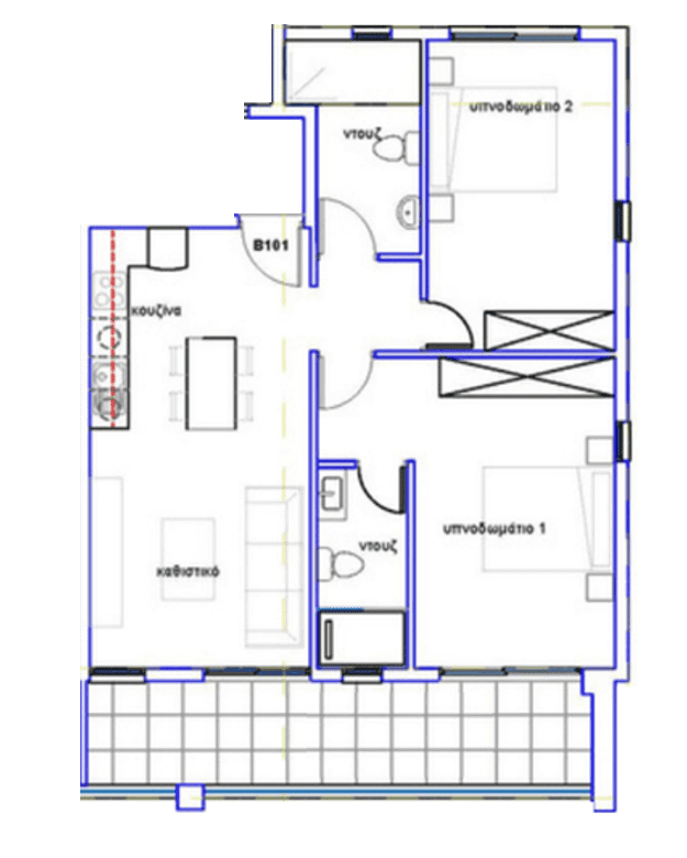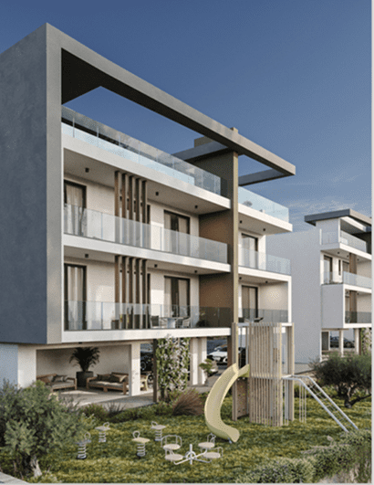 Πωλείται υπο – ανέγερση διαμέρισμα δυο υπνοδωματίων στη Γεροσκήπου της επαρχίας Πάφου. Αποτελείται από 81 τ.μ. καλυμμένους εσωτερικούς χώρους και 13 τ.μ. καλυμμένες βεράντες, ενεργειακής απόδοσης Α. Διαθέτει δυο χώρους υγιεινής, en-suite στο κυρίως υπνοδωμάτιο και καλυμμένο χώρο στάθμευσης. Επίσης διαθέτει πρόνοιες για κεντρική θέρμανση και σύστημα κλιματισμού. Τέλος το κτίριο διαθέτει κοινόχρηστο κήπο οροφής, πισινά, παιδική χαρά και καφετερία. Βρίσκεται σε πολύ καλή περιοχή κοντά σε όλες τις ανέσεις και υπηρεσίες , με θέα την θάλασσα. Τιμή πώλησης 310,000 πλέον Φ.Π.Α.