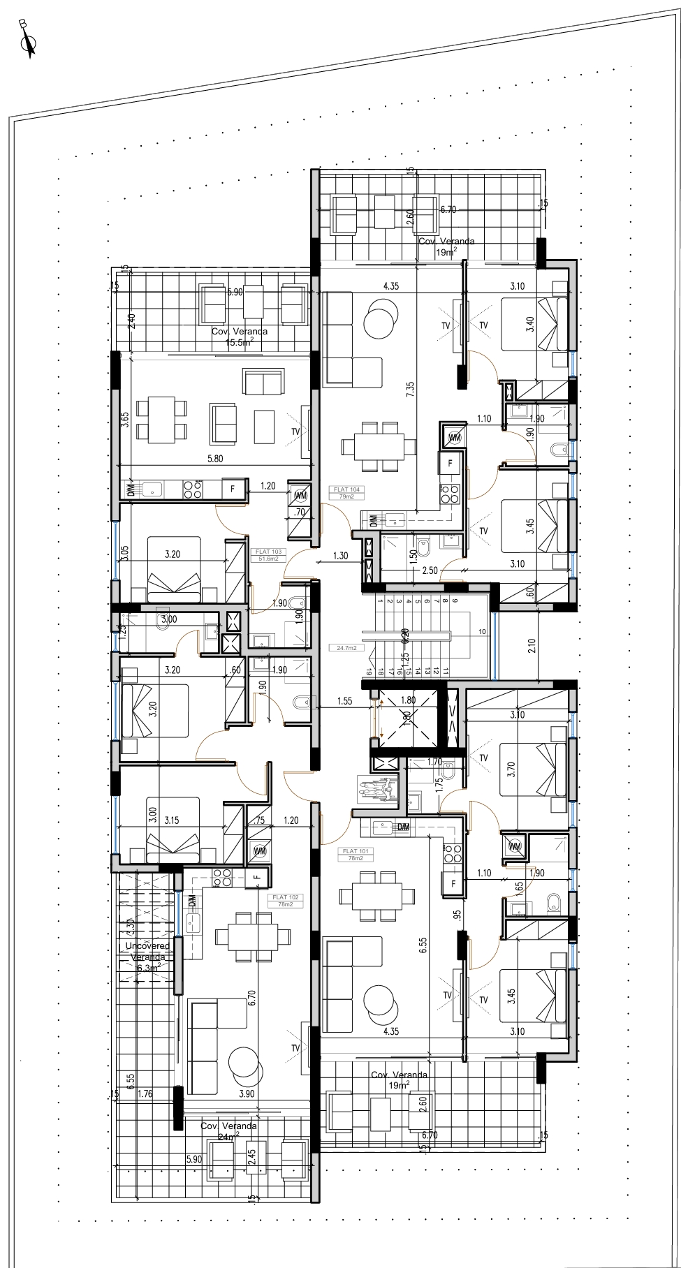 Πωλείται υπό ανέγερση διαμέρισμα δύο υπνοδωματίων στα Λιβάδια – Επαρχίας Λάρνακας με 78 τ.μ. καλυμμένο εσωτερικό χώρο, 24 τ.μ. καλυμμένη βεράντα και 6 τ.μ. ακάλυπτη βεράντα στον 1ο όροφο διώροφης πολυκατοικίας με 8 διαμερίσματα στο σύνολο. Αποτελείται από ενιαίο χώρο κουζίνα/τραπεζαρία/καθιστικό και δύο χώρους υγιεινής εκ των οποίων ιδιωτικό μπάνιο (en-suite) στο κυρίως υπνοδωμάτιο. Διαθέτει πρόνοια κλιματισμού, αποθήκη και ένα καλυμμένο χώρο στάθμευσης. Το κτίριο είναι Ενεργειακής Απόδοσης Α. Βρίσκεται σε προνομιακή τοποθεσία δίπλα από πάρκο, προσφέροντας εύκολη πρόσβαση σε όλες τις κύριες ανέσεις και στον κεντρικό αυτοκινητόδρομο, μόλις 5 λεπτά από το κέντρο της Λάρνακας και 1km από την θάλασσα. Τιμή πώλησης 235,000 ευρώ πλέον Φ.Π.Α.