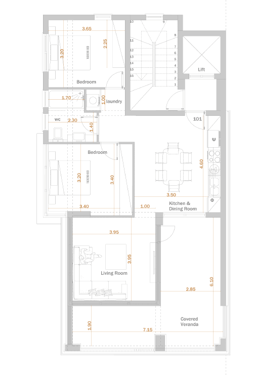 Πωλείται υπό ανέγερση διαμέρισμα δύο υπνοδωματίων στην περιοχή Νεάπολη της επαρχίας Λεμεσού. Αποτελείται από 83 τ.μ. καλυμμένο εσωτερικό χώρο , 24 τ.μ. καλυμμένες βεράντες και 5 τ.μ. ακάλυπτη βεράντα, στον 1ο όροφο τετραώροφης πολυκατοικίας. Διαθέτει 1 χώρο υγιεινής, σύστημα κλιματισμού VRV, υποδαπέδια θέρμανση, πιεστικό σύστημα νερού, θυροτηλεόραση, εγκατεστημένες συσκευές της κουζίνας, αποθήκη και καλυμμένο χώρο στάθμευσης. Το έργο διαθέτει πιστοποιητικό ενεργειακής απόδοσης Α και βρίσκεται σε πολύ καλή περιοχή μόλις 110 μέτρα από τη θάλασσα. Τιμή πώλησης 635,000 ευρώ, πλέον Φ.Π.Α.