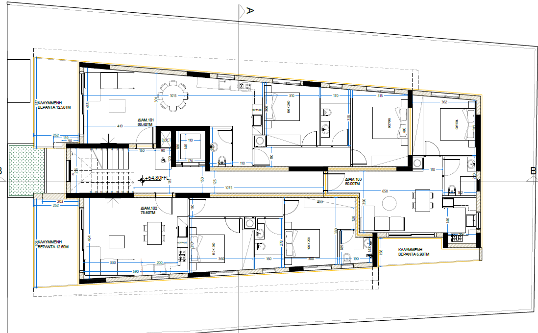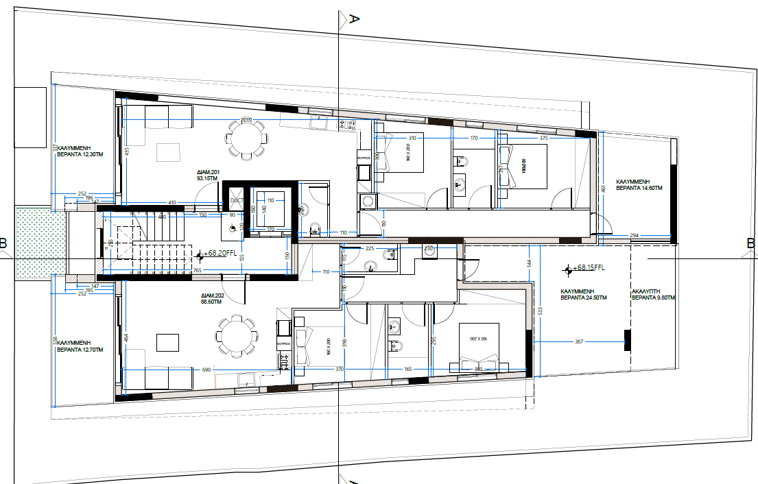 Πωλείται υπό ανέγερση διαμέρισμα δύο υπνοδωματίων στην περιοχή Μέσα Γειτονιά της επαρχίας Λεμεσού. Αποτελείται από 93 τ.μ. καλυμμένο εσωτερικό χώρο και 26.5 τ.μ. καλυμμένη βεράντα , στον 2ο όροφο τριώροφης πολυκατοικίας με 7 διαμερίσματα στο σύνολο. Διαθέτει 2 χώρους υγιεινής, πρόνοια για σύστημα κλιματισμού και ηλεκτρικές θέρμανσης, πρόνοια για ηλεκτρικά ρολά στα δωμάτια, πιεστικό σύστημα νερού, ηλιακό θερμοσίφωνα, θυροτηλεόραση, διπλά τζάμια στα παράθυρα, αποθήκη και καλυμμένο χώρο στάθμευσης. Το έργο βρίσκεται σε πολύ καλή περιοχή κοντά σε υπηρεσίες και ανέσεις. Η αναμενόμενη ημερομηνία παράδοσης είναι τέλη του 2026. Τιμή πώλησης 425,000 ευρώ, πλέον Φ.Π.Α.