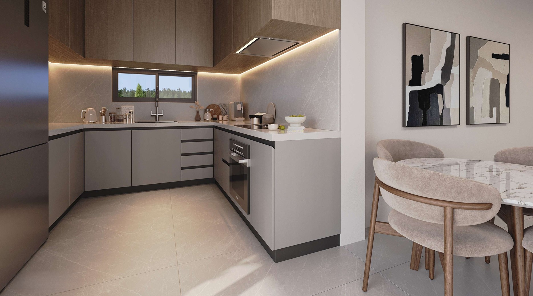 Πωλείται υπό ανέγερση διαμέρισμα δύο υπνοδωματίων στην περιοχή Νέα Μαρίνα – Επαρχίας Λάρνακας. Βρίσκεται στον 1ο όροφο τετραώροφης πολυκατοικίας με 8 διαμερίσματα στο σύνολο με 76 τ.μ. καλυμμένο εσωτερικό χώρο και 25 τ.μ. καλυμμένη βεράντα. Αποτελείται από ενιαίο χώρο κουζίνα/τραπεζαρία/καθιστικό, δύο χώρους υγιεινής εκ των οποίων ιδιωτικό μπάνιο (en-suite) στο κυρίως υπνοδωμάτιο και ένα κοινό. Διαθέτει πλήρες εγκατάσταση θυροτηλεόρασης, κοινόχρηστα φωτοβολταικά, αποθήκη και ένα καλυμμένο χώρο στάθμευσης. Το κτίριο είναι Ενεργειακής Απόδοσης Α και βρίσκεται σε προνομιακή τοποθεσία προσφέροντας εύκολη πρόσβαση σε όλες τις κύριες ανέσεις και στον κεντρικό αυτοκινητόδρομο. Αναμενόμενη ημερομηνία παράδοσης Δεκέμβριο του 2028. Τιμή πώλησης 225,000 ευρώ πλέον Φ.Π.Α.