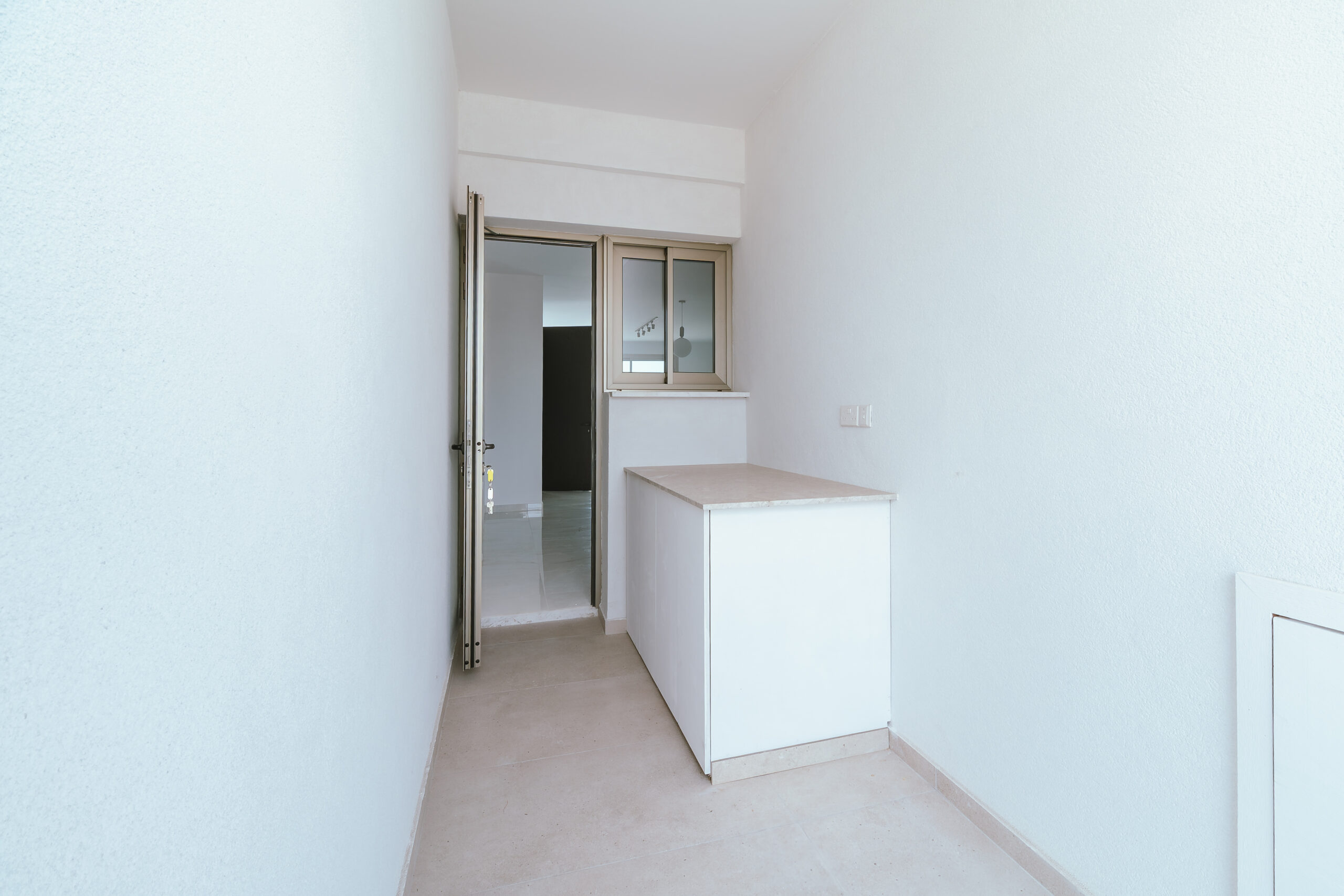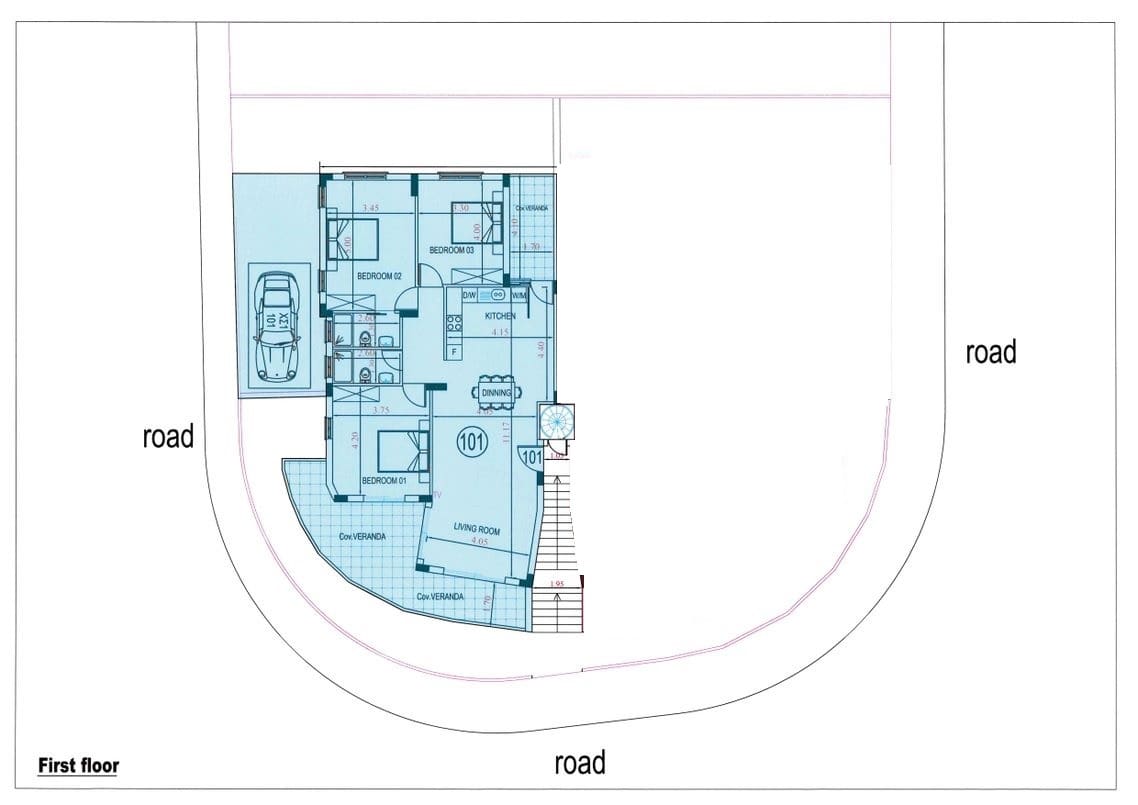 Πωλείται καινούργιο ετοιμοπαράδοτο διαμέρισμα τριών υπνοδωματίων στη Γεροσκήπου – επαρχία Πάφου, με 120 τ.μ. καλυμμένο εσωτερικό χώρο και 30 τ.μ. καλυμμένη βεράντα, 40 τ.μ. κήπο οροφής στον δεύτερο όροφο μικρής πολυκατοικίας, 4 διαμερίσματα στο σύνολο, ενεργειακής απόδοσης Α. Διαθέτει 2 χώρους υγιεινής, ensuite στο κυρίως υπνοδωμάτιο, κήπο οροφής, ιδιωτικό χώρο στάθμευσης, εγκατεστημένο κρυφό σύστημα κλιματισμού VRV και υποδαπέδια θέρμανση. Βρίσκεται σε πολύ καλή περιοχή κοντά σε πολλές ανέσεις. Επίσης διαθέτει πρόνοια για φορτιστή ηλεκτρικού οχήματος. Τιμή πώλησης 385,000 ευρώ πλέον Φ.Π.Α.