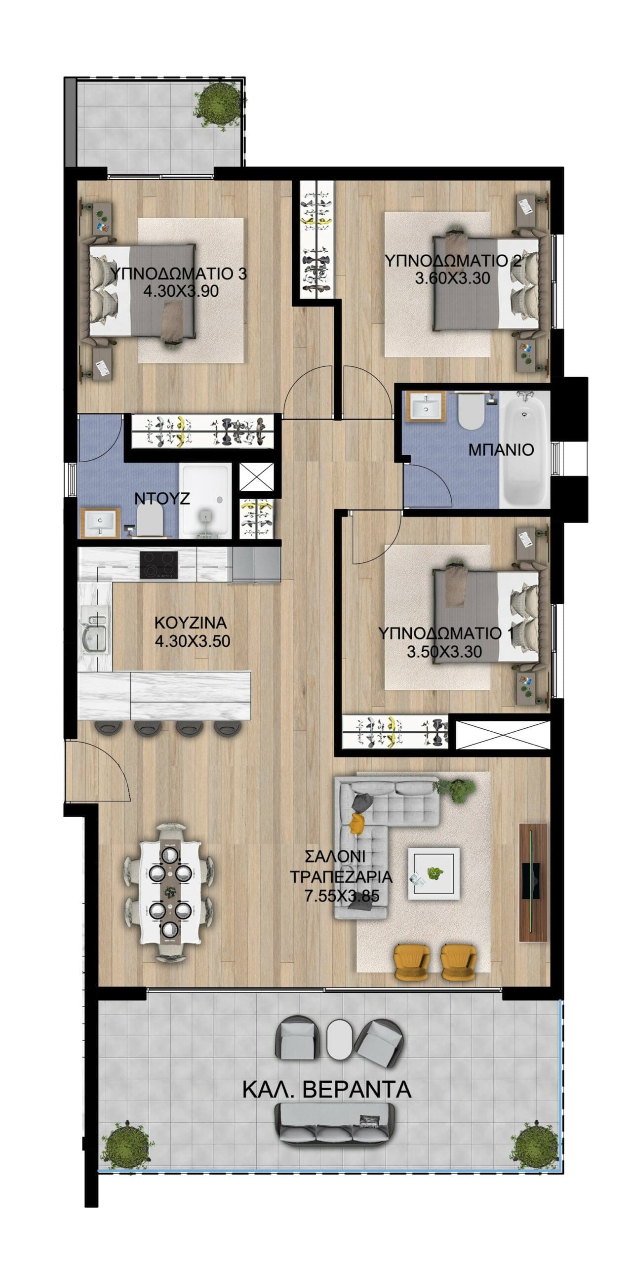 Πωλείται υπό ανέγερση διαμέρισμα τριών υπνοδωματίων στη Γεροσκήπου – επαρχίας Πάφου. Αποτελείται από 142 τ.μ. καλυμμένους εσωτερικούς χώρους, 26 τ.μ. καλυμμένη βεράντα και 4 τ.μ. αποθήκη. Διαθέτει δυο χώρους υγιεινής, ensuite στο κυρίως υπνοδωμάτιο, αποθήκη και καλυμμένο χώρο στάθμευσης για ένα αυτοκίνητο. Επίσης διαθέτει πρόνοιες για κλιματιστικό σύστημα και ηλεκτρική θέρμανση. Βρίσκεται σε πολύ καλή τοποθεσία, κοντά σε πολλές υπηρεσίες και ανέσεις. Τιμή πώλησης 335,000 ευρώ πλέον Φ.Π.Α.