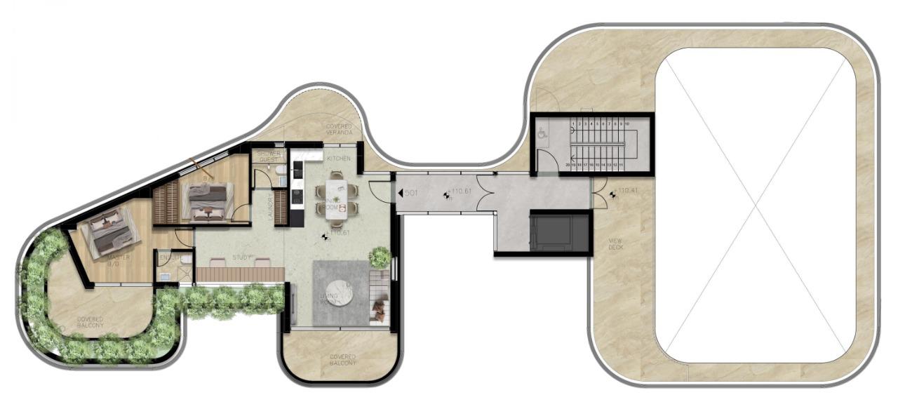 Πωλείται υπό ανέγερση διαμέρισμα τριών υπνοδωματίων στην περιοχή Άγιος Παύλος στην επαρχία Πάφου. Αποτελείται από 108 τ.μ. καλυμμένο εσωτερικό χώρο, 34 τ.μ. καλυμμένη βεράντα, 4 τ.μ. ακάλυπτη βεράντα και 12 τ.μ. καλυμμένο χώρο στάθμευσης. Διαθέτει δύο χώρους υγιεινής, en suite στο κυρίως υπνοδωμάτιο, πλυσταριό, αποθήκη, κοινόχρηστο γυμναστήριο και κοινόχρηστη πισίνα στην οροφή της πολυκατοικίας. Βρίσκεται κοντά σε πάρκο, υπεραγορά και κοντά σε διάφορες υπηρεσίες. Τιμή πώλησης 536,000 ευρώ πλέον ΦΠΑ.