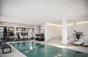 Πωλείται υπό ανέγερση διαμέρισμα δύο υπνοδωματίων σε χωριό συνταξιοδότησης στην Γεροσκήπου – επαρχία Πάφου, στο ισόγειο μικρής οικοδομής με άλλο ένα όροφο, με 81 τ.μ. καλυμμένο εσωτερικό χώρο και 15,5 τ.μ. καλυμμένη βεράντα. Διαθέτει εγκατεστημένα κρυφά συστήματα κλιματισμού με ζεστό και κρύο αέρα, υποδαπέδια θέρμανση, σύστημα συναγερμού, en-suite στο κυρίως υπνοδωμάτιο και πιεστικό σύστημα νερού. Επίσης το συγκρότημα διαθέτει κοινόχρηστη εξωτερική πισίνα και εσωτερική θερμαινόμενη πισίνα, σπά και γυμναστήριο, μπάρ, εστιατόριο και καφετέρια. Διαθέτει ιατρικό κέντρο εντός του συγκροτήματος, νοσοκόμα 24/7, on-call γιατρό και ασθενοφόρο, σύστημα κλήσης έκτακτης ανάγκης και φαρμακείο. Βρίσκεται σε συνταξιοδοτικό χωριό το οποίο θα αποτελείται από περίπου 105 ακίνητα σε μια περιφραγμένη περιοχή με ιδιωτική είσοδο 31.000 τ.μ. περίπου. Τιμή πώλησης 310,000 ευρώ πλέον Φ.Π.Α.