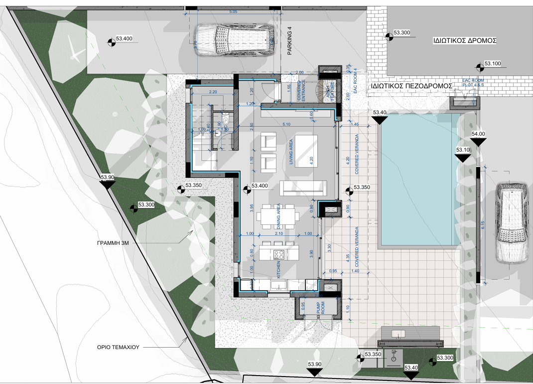 Υπάρχει δυνατότητα προσθήκης ηλιακών πάνελ 6kw με επιπλέον χρέωση 15,000 ευρώ πλέον ΦΠΑ, χώρο για ψησταριά με 15,000 ευρώ πλέον ΦΠΑ και επίπλωσης με 35,000 ευρώ πλέον ΦΠΑ.