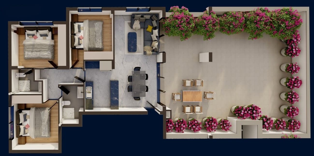Πωλείται υπό ανέγερση μοντέρνο ρετιρέ διαμέρισμα τριών υπνοδωματίων στην περιοχή Δερύνειας – επαρχίας Αμμοχώστου. Βρίσκεται στον 2ο όροφο διώροφης πολυκατοικίας με οκτώ διαμερίσματα συνολικά, με 100 τ.μ. εσωτερικό χώρο, 31 τ.μ. καλυμμένη βεράντα και 101 τ.μ ακάλυπτη βεράντα. Διαθέτει ενιαίο χώρο κουζίνα/τραπεζαρία και καθιστικό, δύο χώρους υγιεινής εκ των οποίων en suite στο κυρίως υπνοδωμάτιο, καλυμμένο χώρο στάθμευσης και αποθήκη. Είναι Ενεργειακής Απόδοσης Α’ και βρίσκεται σε πολύ καλή περιοχή, με θέα την πόλη, πολύ κοντά σε υπηρεσίες όπως σούπερμαρκετ, καταστήματα και κυβερνητικές υπηρεσίες. Επιπλέον το διαμέρισμα εμπίπτει στο νέο ακριτικό σχέδιο για κυβερνητική βοήθεια από 20,000 ευρώ μέχρι 55,000 ευρώ. Τιμή πώλησης 220,000 ευρώ πλέον Φ.Π.Α.