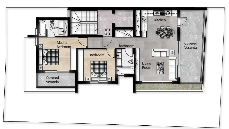 Πωλείται υπό ανέγερση οροφοδιαμέρισμα δύο υπνοδωματίων στην περιοχή Μέσα Γειτονιά της επαρχίας Λεμεσού. Αποτελείται από 81 τ.μ. καλυμμένο εσωτερικό χώρο και 21 τ.μ. καλυμμένη βεράντα, στον 1ο όροφο μικρής πολυκατοικίας με τρία οροφοδιαμερίσματα στο σύνολο. Διαθέτει 2 χώρους υγιεινής εκ των οποίων en suite στο κυρίως υπνοδωμάτιο, πρόνοια για σύστημα κλιματισμού, πιεστικό σύστημα νερού, ηλιακό θερμοσίφωνα, θυροτηλεόραση, διπλά τζάμια στα παράθυρα, αποθήκη και καλυμμένο χώρο στάθμευσης. Το έργο διαθέτει πιστοποιητικό ενεργειακής απόδοσης Α και βρίσκεται σε πολύ καλή περιοχή κοντά σε διάφορες υπηρεσίες και ανέσεις. Τιμή πώλησης 350,000 ευρώ, πλέον Φ.Π.Α.