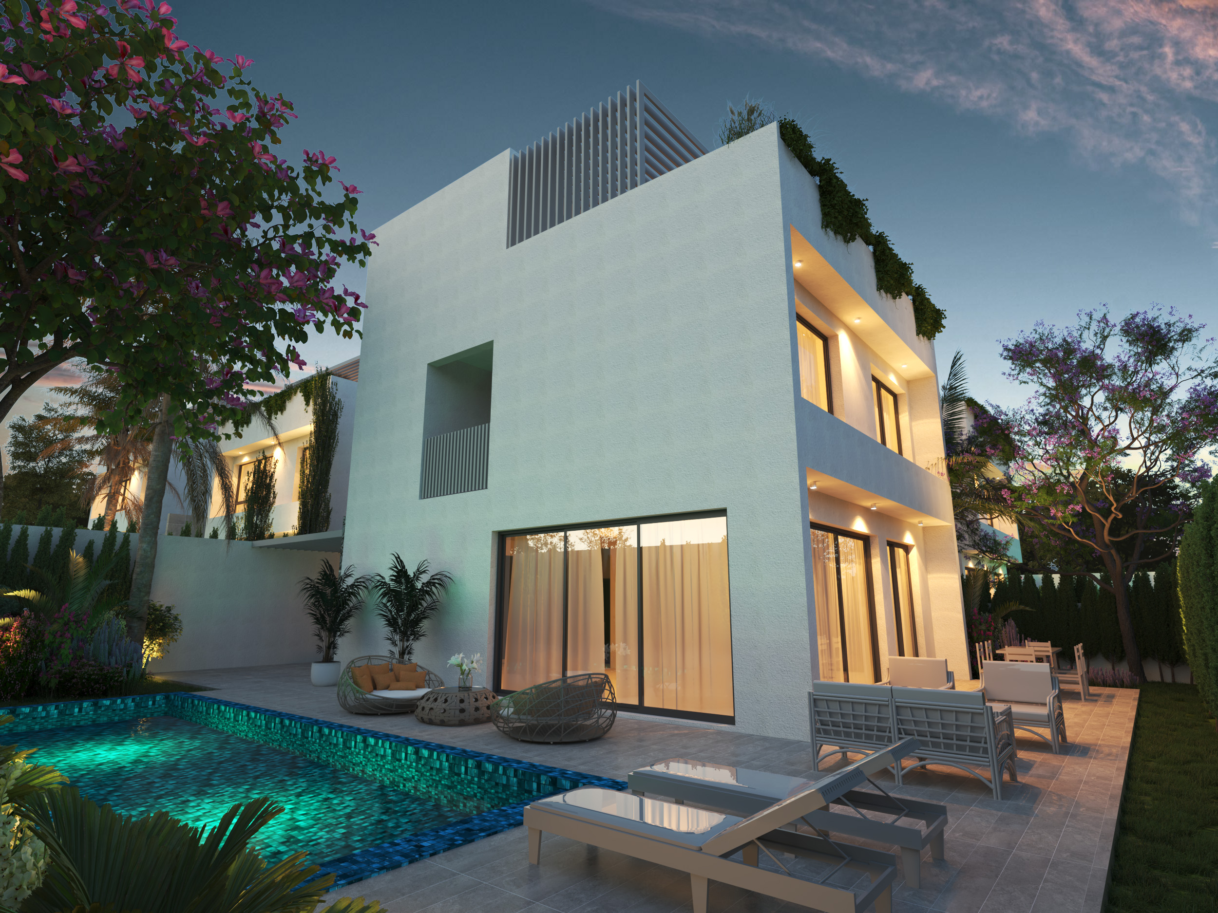 Πωλείται υπό ανέγερση παραθαλάσσια πολυτελής κατοικία τεσσάρων υπνοδωματίων στον Πρωταρά – επαρχία Αμμοχώστου. Η οικία αποτελείται από 180 τ.μ καλυμμένους εσωτερικούς χώρους, 25 τ.μ. καλυμμένες βεράντες, 30 τ.μ. ακάλυπτες βεράντες και 60 τ.μ κήπο οροφής χτισμένη σε 494 τ.μ οικόπεδο. Στο ισόγειο διαθέτει ενιαίο χώρο καθιστικό/τραπεζαρία/κουζίνα και μια τουαλέτα επισκεπτών. Στον επάνω όροφο διαθέτει τρία υπνοδωμάτια, όλα με ιδιωτικά μπάνια (en-suite). Ακολούθως υπάρχουν σκαλιά που οδηγούν στον κήπο οροφής που διαθέτει αποθήκη και χώρος για τέταρτο υπνοδωμάτιο. Εξωτερικά διαθέτει ιδιωτική πισίνα (overflow), κήπος, χώρος μπάρμπεκιου και δύο καλυμμένους χώρους στάθμευσης τύπου side by side. Η κατοικία είναι Ενεργειακής απόδοσης Α’. Επιπρόσθετα, διαθέτει πρόνοιες για σύστημα κλιματισμού, πρόνοια σύστηματος φωτοβολταικών και προαιρετικό υπόγειο. Βρίσκεται κοντά σε όλες τις υπηρεσίες, καταστήματα, εστιατόρια και 400 μέτρα από την θάλασσα. Ημερομηνία παράδοσης 15 μήνες μετά την υπογραφή σύμβασης. Τιμή πώλησης 860,000 ευρώ πλέον Φ.Π.Α.