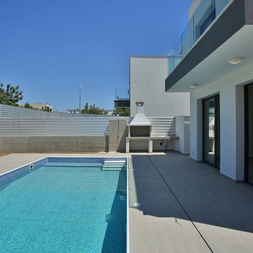 Πωλείται υπό ανέγερση πολυτελής έπαυλη τριών υπνοδωματίων στη Μεσόγη στην επαρχία Πάφου. Αποτελείται από 181 τ.μ. καλυμμένους χώρους και 20 τ.μ. ακάλυπτη βεράντα σε 250 τ.μ. οικόπεδο. Διαθέτει 3 χώρους υγιεινής, en suite στο κυρίως υπνοδωμάτιο, πιεστικό σύστημα νερού, χώρο στάθμευσης, αυλή, βεράντα, πρόνοιες κλιματισμού και θέρμανσης. Αναμενόμενη ημερομηνία παράδοσης τον Μάιο του 2024. Βρίσκεται σε πολύ ώραια και ήσυχη περιοχή, κοντά σε υπηρεσίες και μόλις 5 λεπτά από το κέντρο της πόλης. Τιμή πώλησης 445,000 ευρώ πλέον Φ.Π.Α. Για προσθήκη πισίνας 4 x 8 μέτρα υπάρχει επιπλέον χρέωση 25,000 ευρώ πλέον Φ.Π.Α. και για προσθήκη 41 τ.μ. κήπου οροφής υπάρχει επιπλέον χρέωση 30,000 ευρώ πλέον Φ.Π.Α.