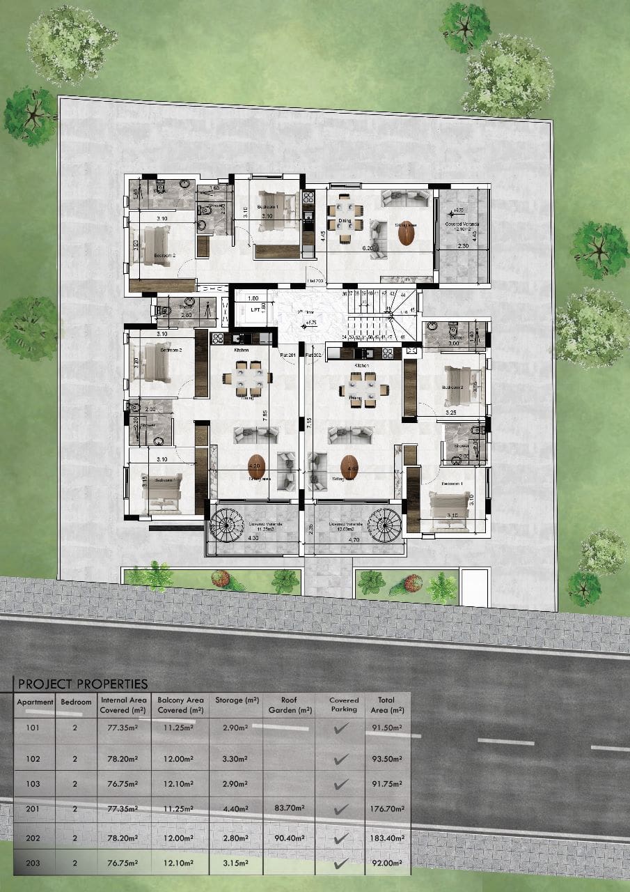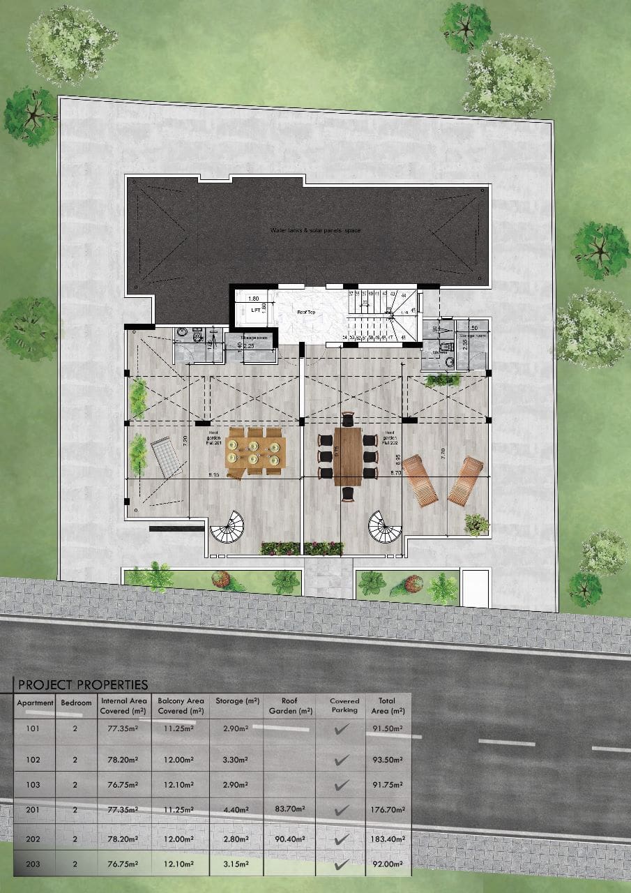 Πωλείται υπό ανέγερση ρετιρέ διαμέρισμα δύο υπνοδωματίων στα Λιβάδια – επαρχία Λάρνακας, με 75 τ.μ. καλυμμένο εσωτερικό χώρο, 12 τ.μ. καλυμμένη βεράντα και 60 τ.μ κήπο οροφής στον 2ο όροφο διώροφης πολυκατοικίας με 8 διαμερίσματα στο σύνολο. Διαθέτει 2 χώρους υγιεινής, en suite στο κυρίως υπνοδωμάτιο, πρόνοια για συστήματα κλιματισμού, ηλιακό θερμοσίφωνα, πιεστικό σύστημα νερού, ηχομόνωση μεταξύ ορόφων, στεγασμένο χώρο στάθμευσης και εξωτερική αποθήκη. Το κτίριο θα κατασκευαστεί με πρώτης τάξεως υλικά και θα είναι ενεργειακής κλάσης Α’. Βρίσκεται σε πολύ καλή περιοχή κοντά στην καινούρια Μαρίνα, κοντά από το American University και πολύ κοντά από την παραλία και διάφορες υπηρεσίες. Αναμενόμενη ημερομηνία παράδοσης Ιανουάριο του 2027. Τιμή πώλησης 320,000 ευρώ πλέον Φ.Π.Α
