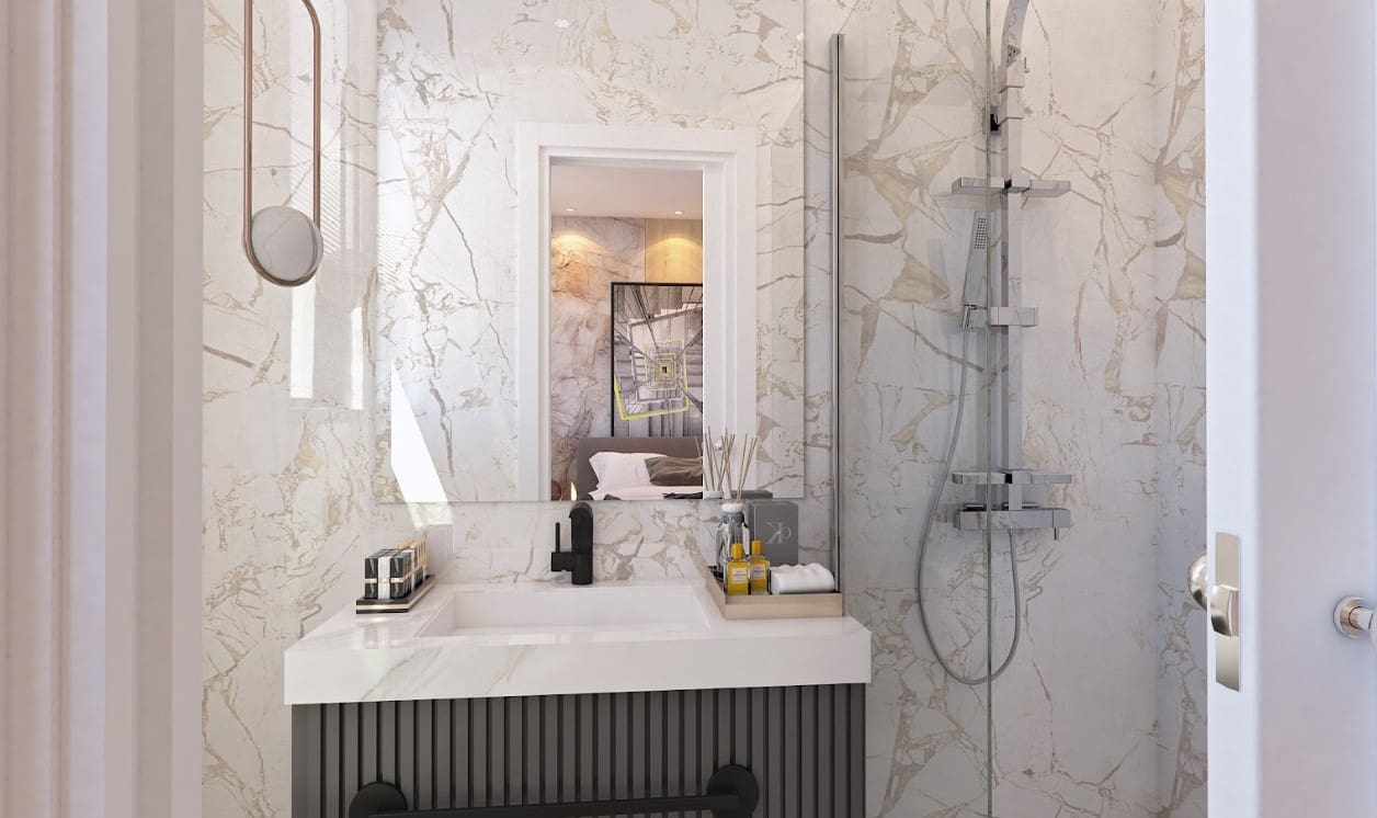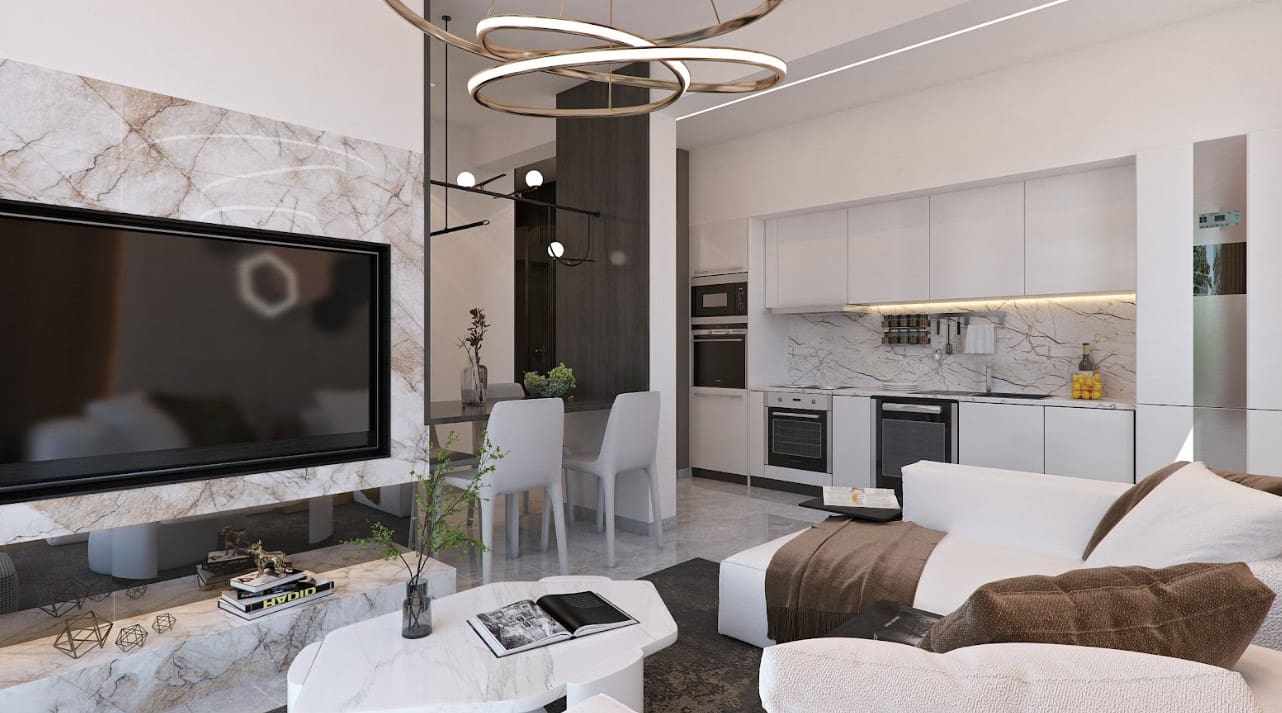 Πωλείται υπό ανέγερση διαμέρισμα δύο υπνοδωματίων στην αριστοκρατική περιοχή Nέα Μαρίνα – επαρχία Λάρνακας, στον 4ο όροφο τετραόροφης πολυκατοικίας με 11 διαμερίσματα συνολικά. Το διαμέρισμα αποτελείται από 80 τ.μ. καλυμμένο εσωτερικό χώρo, 22 τ.μ. καλυμμένη βεράντα και 49 τ.μ. κήπο οροφής. Διαθέτει ενιαίο χώρο κουζίνας, σαλονιού και τραπεζαρίας με 3 χώρους υγεινής, en suite στο κυρίως υνοδωμάτιο. Επίσης διαθέτει πιεστικό σύστημα νερού, πρόνοιες για σύστημα κλιματισμού, καλυμμένο χώρο στάθμευσης και αποθήκη. Είναι Ενεργειακής απόδοσης Α. Το έργο αναμένεται να ολοκληρωθεί το 2026. Βρίσκεται πολύ κοντά σε σούπερ μάρκετ, ιδιωτικά σχολεία και με άμεση πρόσβαση σε αυτοκινητόδρομους προς Λευκωσία, Λεμεσό, Πάφο και Αμμόχωστο. Τιμή πώλησης 350.000 ευρώ πλέον Φ.Π.Α.