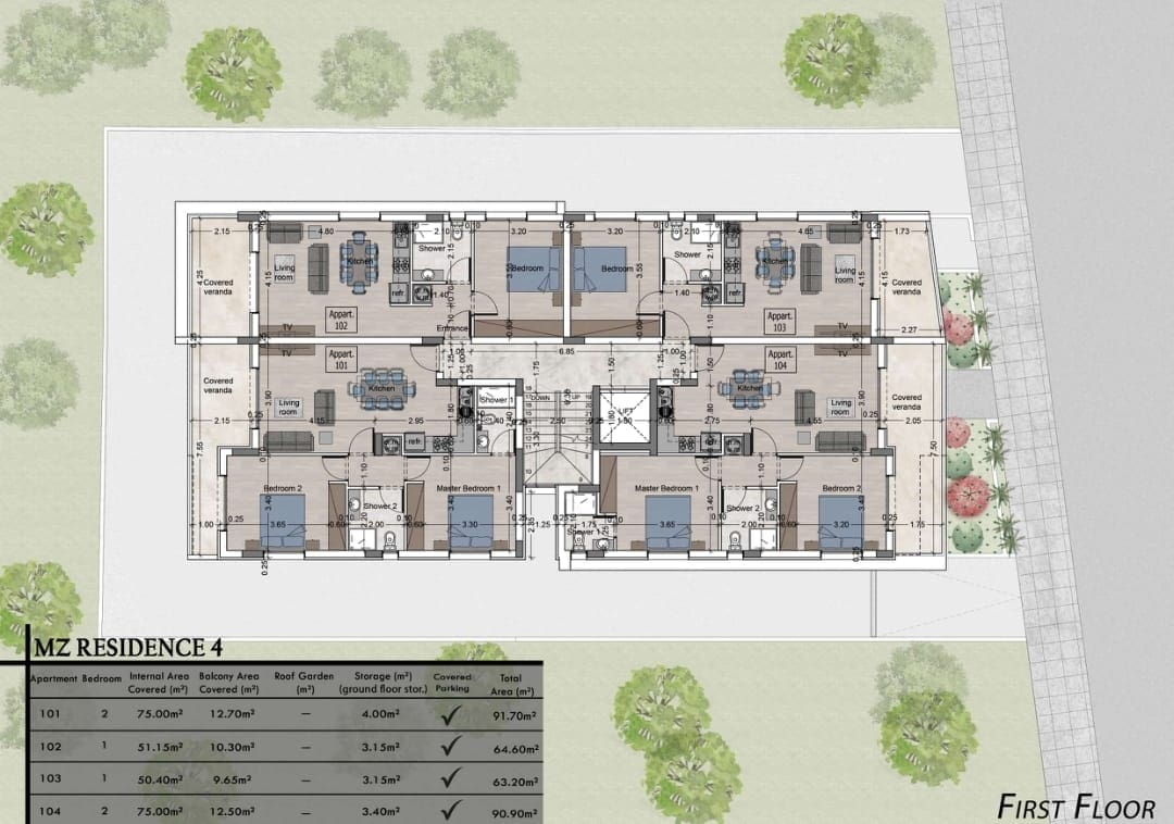 Πωλείται υπό ανέγερση ρετιρέ διαμέρισμα δύο υπνοδωματίων με κήπο οροφής στα Λιβάδια – επαρχία Λάρνακας, με 75 τ.μ. καλυμμένο εσωτερικό χώρο, 9 τ.μ. καλυμμένη βεράντα και 91 τ.μ. κήπο οροφής, στον 2ο όροφο διώροφης πολυκατοικίας με 8 διαμερίσματα στο σύνολο. Διαθέτει ενιαίο χώρο κουζίνας, σαλονιού και τραπεζαρίας, 3 χώρους υγιεινής, εκ των οποίων en-suite στο κυρίως υπνοδωμάτιο και στον κήπο οροφής, στεγασμένο χώρο στάθμευσης και αποθήκη. Βρίσκεται σε πολύ καλή περιοχή κοντά σε διάφορες υπηρεσίες. Με αναμενόμενη ημερομηνία παράδοσης του έργου τον Οκτώβριο του 2025. Τιμή πώλησης 265,000 ευρώ πλέον Φ.Π.Α