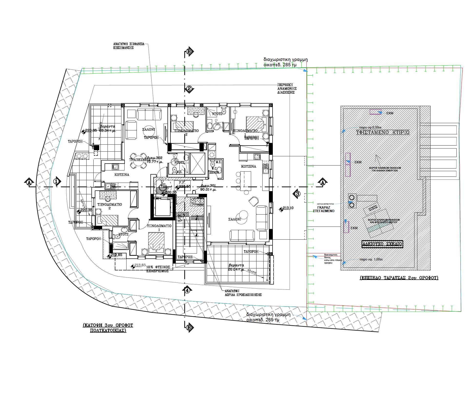 Πωλείται υπό ανέγερση ρετιρέ διαμέρισμα δύο υπνοδωματίων στα Λατσιά, κοντά στο ΓΣΠ – επαρχία Λευκωσίας, στον 3ο όροφο μικρής τριώροφης πολυκατοικίας με 8 διαμερίσματα συνολικά, με 76 τ.μ. εσωτερικό χώρο, 28 τ.μ. καλυμμένη βεράντα και 34 τ.μ. κήπο οροφής, με υψηλές προδιαγραφές κατασκευής. Διαθέτει πρόνοια για κεντρική θέρμανση, πρόνοια για συστήματα κλιματισμού, en-suite στο κυρίως υπνοδωμάτιο, έγχρωμη θυροτηλεόραση, καλυμμένο χώρο στάθμευσης και αποθήκη. Υπάρχει θερμομόνωση εξωτερικά της πολυκατοικίας και είναι Ενεργειακής Απόδοσης Α’. Τιμή πώλησης 225.000 ευρώ συν Φ.Π.Α.