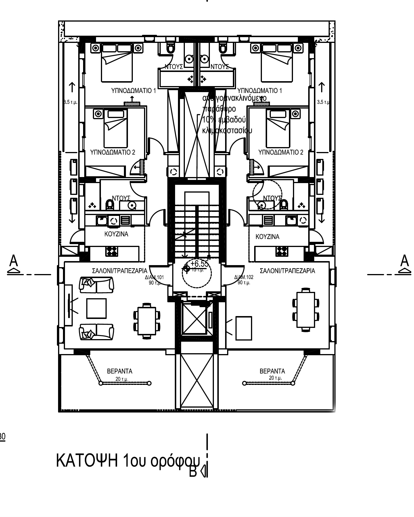 Πωλείται υπό ανέγερση ρετιρέ διαμέρισμα δύο υπνοδωματίων με κήπο οροφής στη Λακατάμια – επαρχία Λευκωσίας, στον 3ο όροφο τριώροφης πολυκατοικίας με 6 μόνο διαμερίσματα στο σύνολο, με 90 τ.μ. εσωτερικό χώρο, 30 τ.μ. καλυμμένες βεράντες και 40 τ.μ. κήπο οροφής. Το διαμέρισμα διαθέτει πλήρως εγκατεστημένες συσκευές κλιματισμού, προνοια ηλεκτρικής θέρμανσης, εγκατεστημένο φωτοβολταϊκό σύστημα, πρόνοια για ηλεκτρικά εξωτερικά shutters στα υπνοδωμάτια, ηλιακό θερμοσίφωνα, θυροτηλεόραση, πιεστικό σύστημα νερού, ηλιακό, 2 χώρους υγιεινής εκ των οποίων en-suite στο κυρίως υπνοδωμάτιο, 2 καλυμμένους χώρους στάθμευσης και αποθήκη. Η πολυκατοικία βρίσκεται σε προνομιακή περιοχή, κοντά σε υπηρεσίες και έχει έγκριση Ενεργειακής Απόδοσης Α’. Τιμή πώλησης του διαμερίσματος 235,000 ευρώ πλέον Φ.Π.Α.