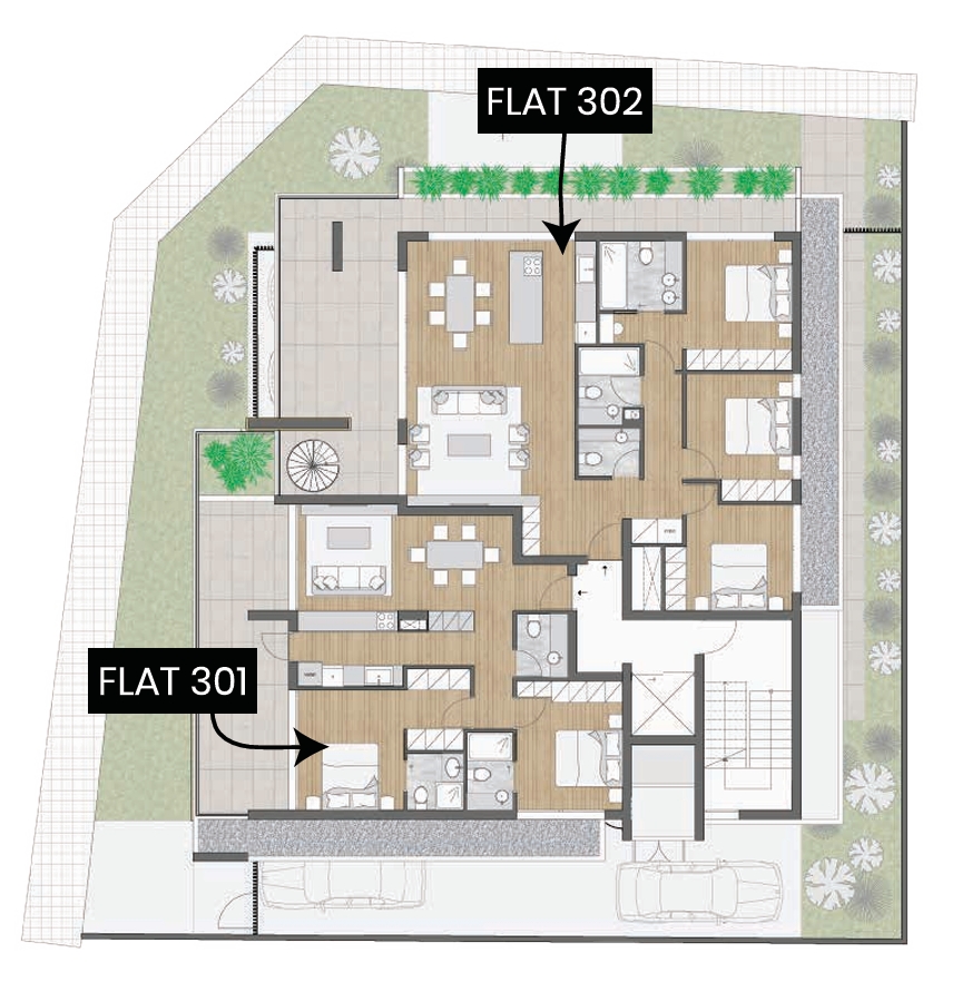 Πωλείται υπό ανέγερση διαμέρισμα τριών υπνοδωματίοων στην περιοχή Radisson – Επαρχίας Λάρνακας. Βρίσκεται στον 3ο όροφο τριώροφης πολυκατοικίας με 10 διαμερίσματα στο σύνολο. Αποτελείται από 107 τ.μ. καλυμμένο εσωτερικό χώρο, 42 τ.μ. καλυμμένη βεράντα και 57 τ.μ. κήπο οροφής. Διαθέτει ενιαίο χώρο κουζίνα/τραπεζαρία/καθιστικό, τρεις χώρους υγιεινής εκ των οποίων ένα ιδιωτικό μπάνιο (en-suite) στο κυρίως υπνοδωμάτιο και ένα καλυμμένο χώρο στάθμευσης. Στον κήπο οροφής διαθέτει τζακούζι, ένα χώρο υγιεινής, αποθήκη και φωτοβολταικά. Το κτίριο είναι Ενεργειακής Απόδοσης Α και βρίσκεται σε προνομιακή τοποθεσία προσφέροντας εύκολη πρόσβαση σε όλες τις κύριες ανέσεις και στον κεντρικό αυτοκινητόδρομο. Τιμή πώλησης 495,000 ευρώ πλέον Φ.Π.Α.