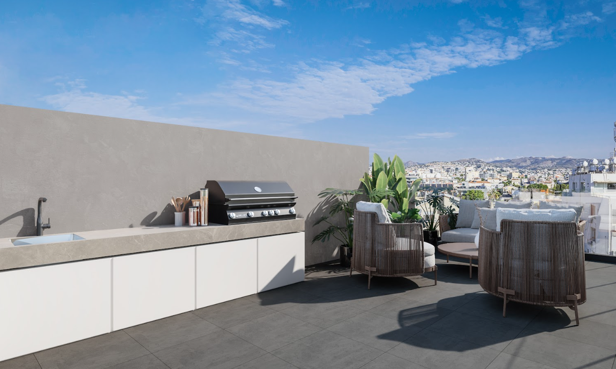 Πωλείται υπό ανέγερση ένα ρετιρέ σύγχρονο και εκλεπτυσμένο διαμέρισμα δύο υπνοδωματίων στην περιζήτητη περιοχή Μέσα Γειτονιά της επαρχίας Λεμεσού. Αποτελείται από 75 τ.μ. καλυμμένου εσωτερικού χώρου, καθώς 18 τ.μ. ευρύχωρης καλυμμένης βεράντας και 28 τ.μ. κήπο οροφής στον 3ο όροφο τριώροφης καλαίσθητης πολυκατοικίας με συνολικά 12 διαμερίσματα. Το ακίνητο προσφέρει 2 κομψούς χώρους υγιεινής εκ των οποίων en suite στο κυρίως υπνοδωμάτιο, πρόνοια για σύστημα κλιματισμού, πιεστικό σύστημα νερού, ηλιακό θερμοσίφωνα, παράθυρα με διπλά τζάμια για καλύτερη θερμομόνωση, ψησταριά, πρόνοια για τζακούζι, θυροτηλεόραση, αποθήκη και καλυμμένο χώρο στάθμευσης. Το έργο διαθέτει πιστοποιητικό ενεργειακής απόδοσης Α, ενώ βρίσκεται σε μια εξαιρετική και αναπτυσσόμενη περιοχή, κοντά σε πληθώρα υπηρεσιών και ανέσεων, προσφέροντας παράλληλα ανεμπόδιστη θέα προς την πόλη και τη θάλασσα. Η αναμενόμενη ημερομηνία παράδοσης είναι μέσα του 2028. Τιμή πώλησης 459,000 ευρώ πλέον Φ.Π.Α.